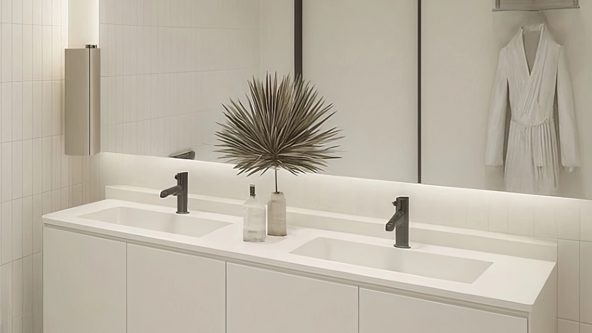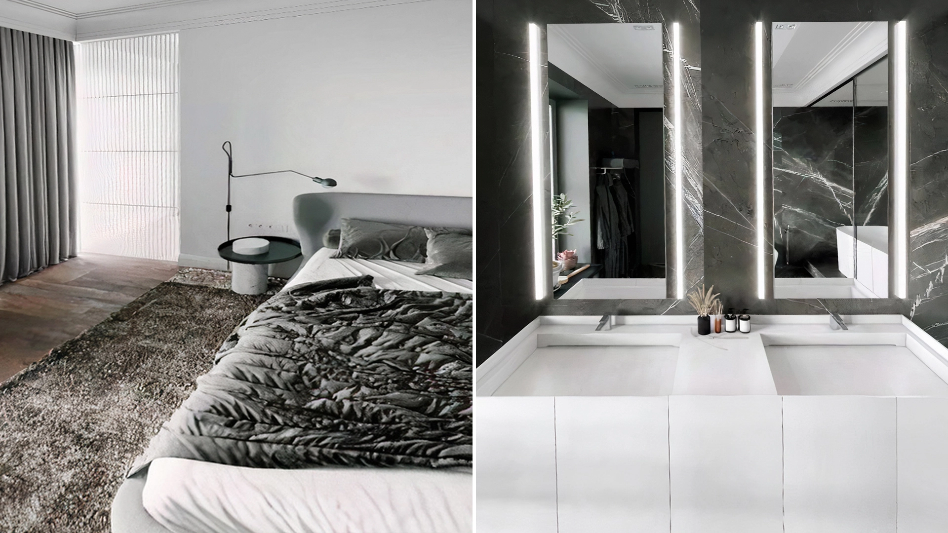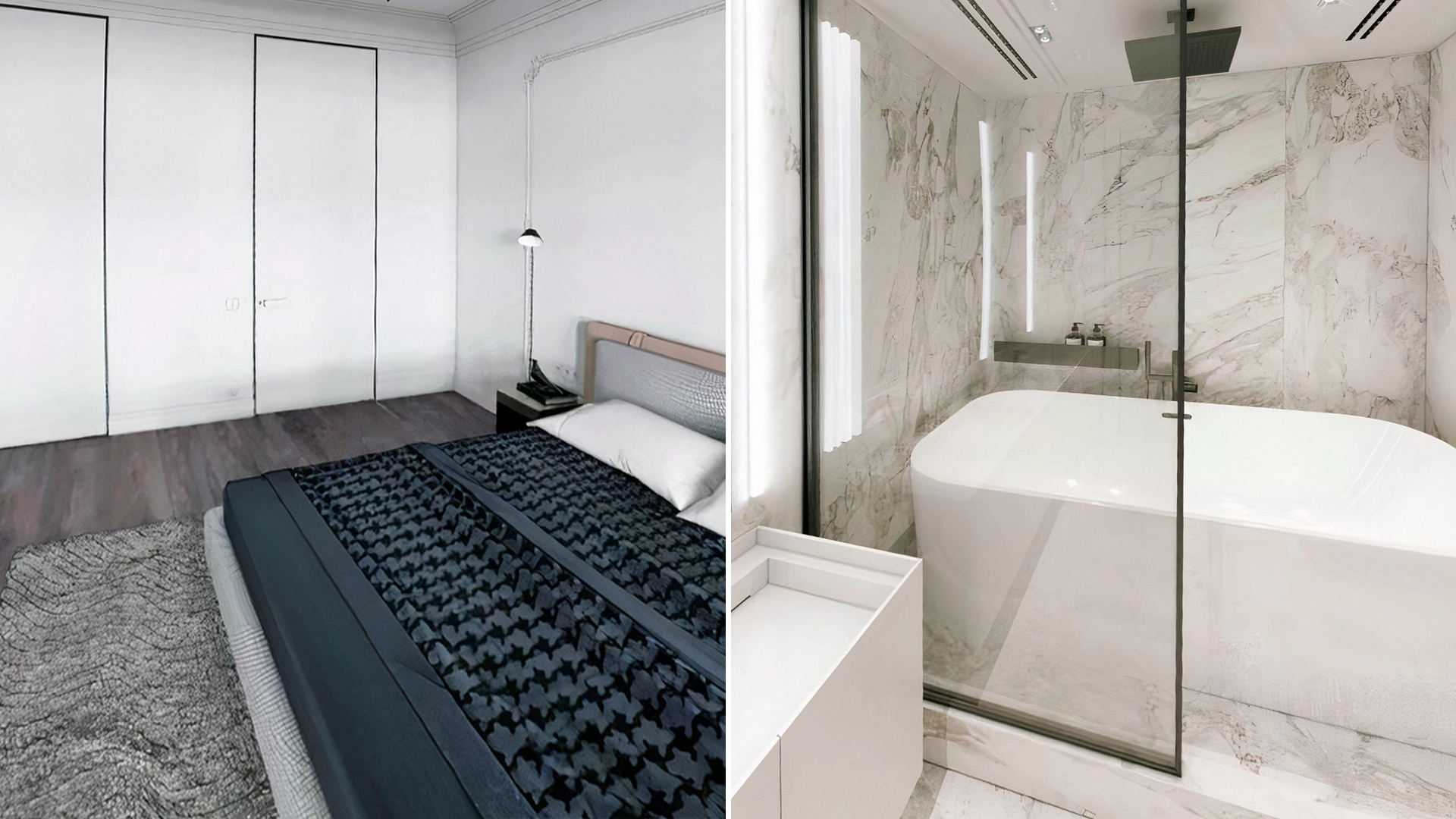 Все лоты предлагаются с готовой отделкой в трёх стилях: классика, неоклассика и лаконичный минимализм. Последний сочетает светлые пастельные тона, дубовый паркет и мрамор Bianco Carra. Неоклассика – бело-серая гамму с акцентами синего и кофейного цветов, тёмный дуб и мрамор Bianco Perlino. Классика – матовые серые оттенки, натуральный дуб и мрамор Petra Del Cadoso.