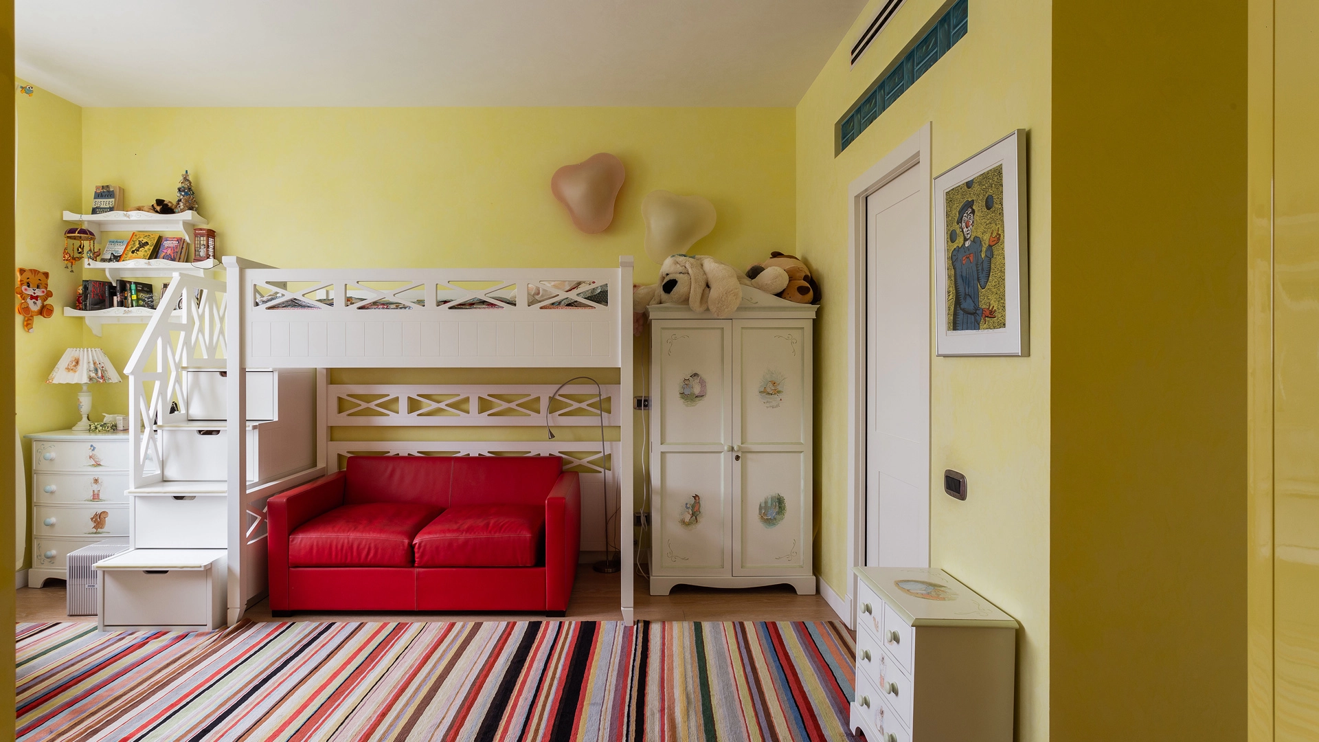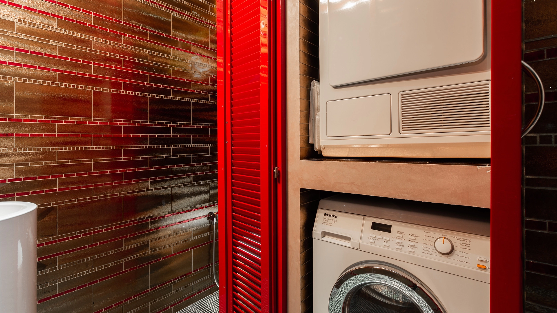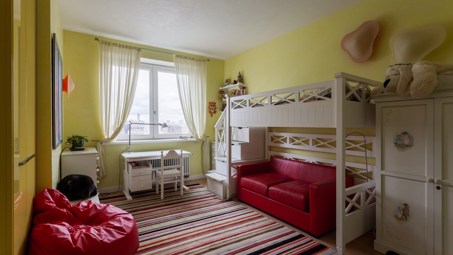 Спланирована кухня-гостиная с обеденной зоной, мастер-спальня с собственной ванной комнатой и двумя гардеробными, детская спальня с ванной комнатой, кабинет или третья спальня с выходом на застекленную лоджию, гостевой санузел с постирочной, холл. Квартира полностью меблирована и укомплектована бытовой техникой Miele. Оборудованы итальянские системы хранения Poliform и сантехника Villeroy & Boch. В стоимость входят 2 машиноместа в подземном паркинге.