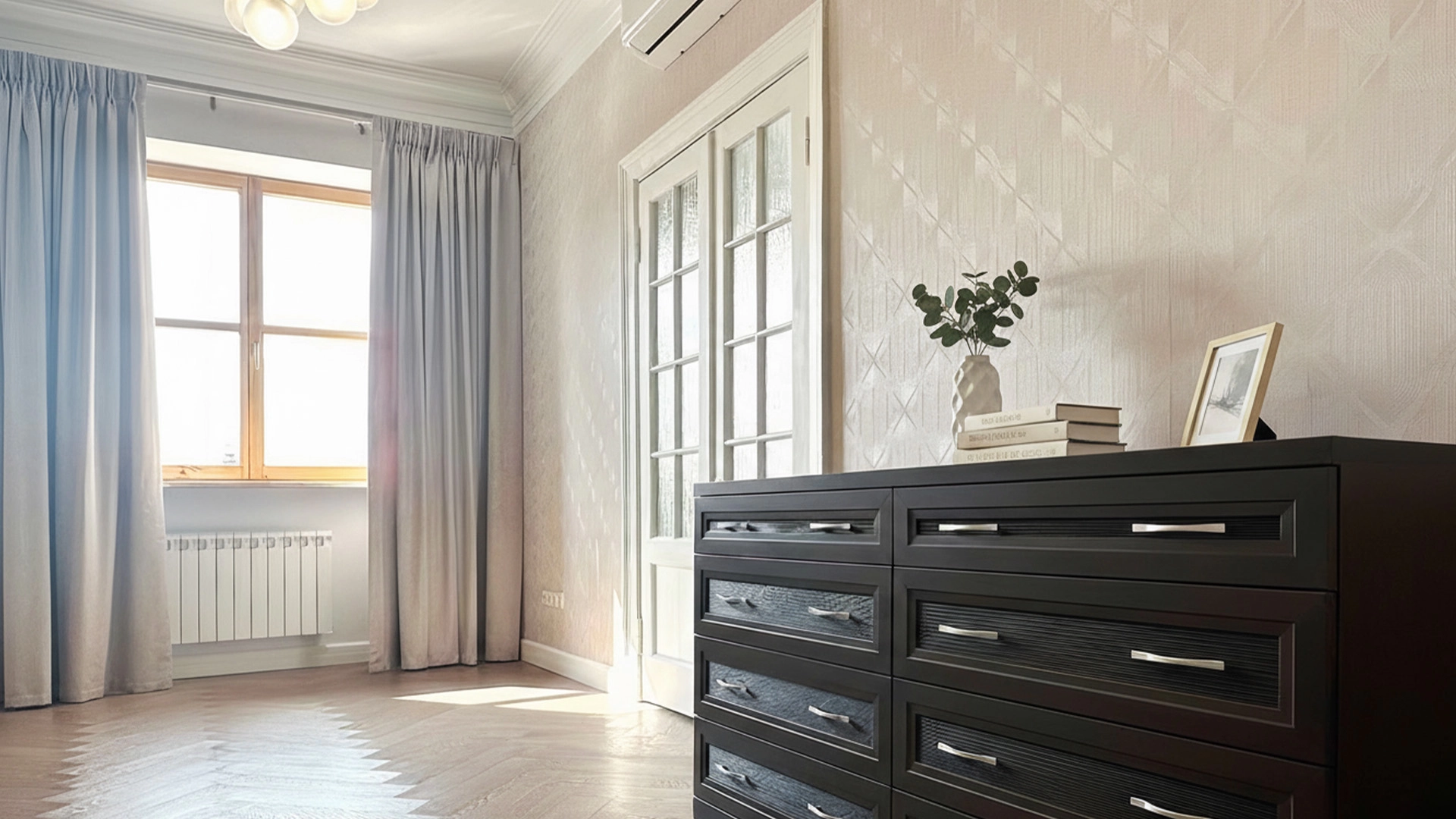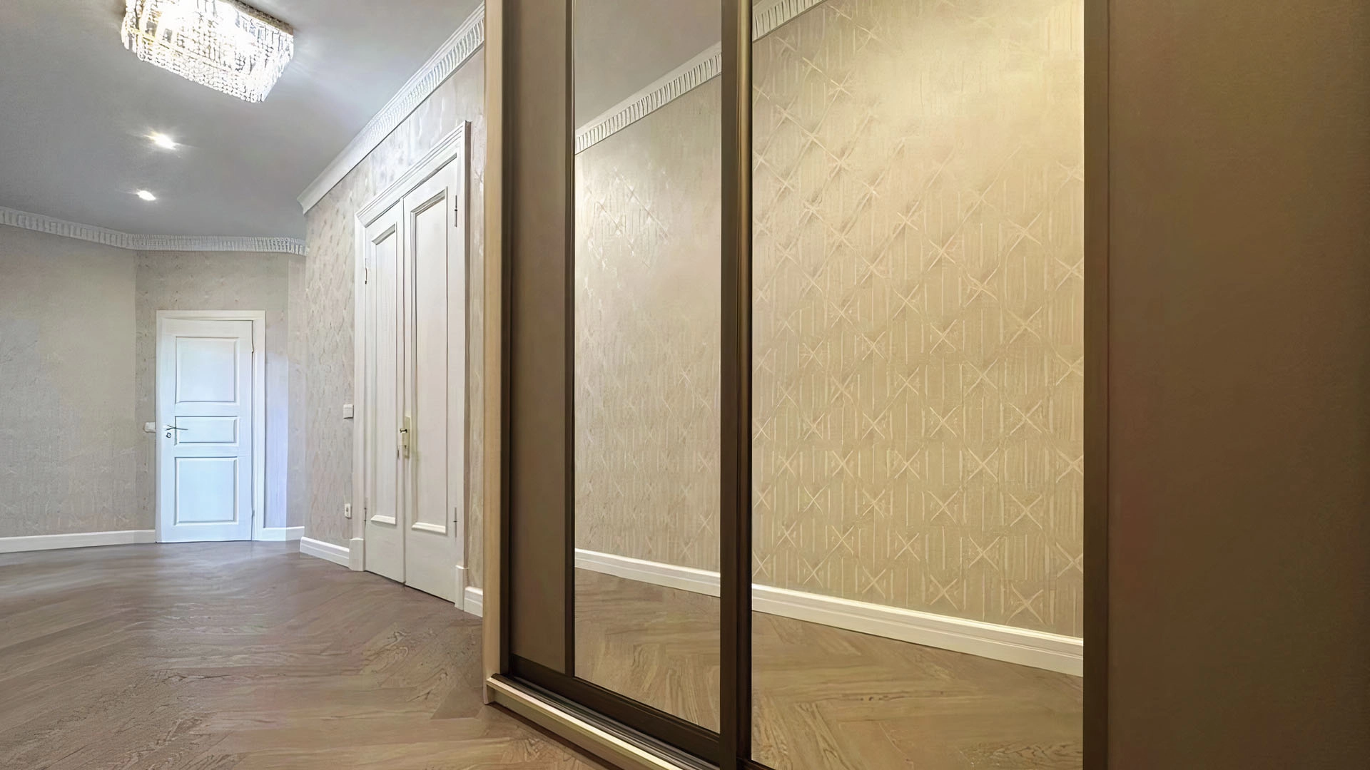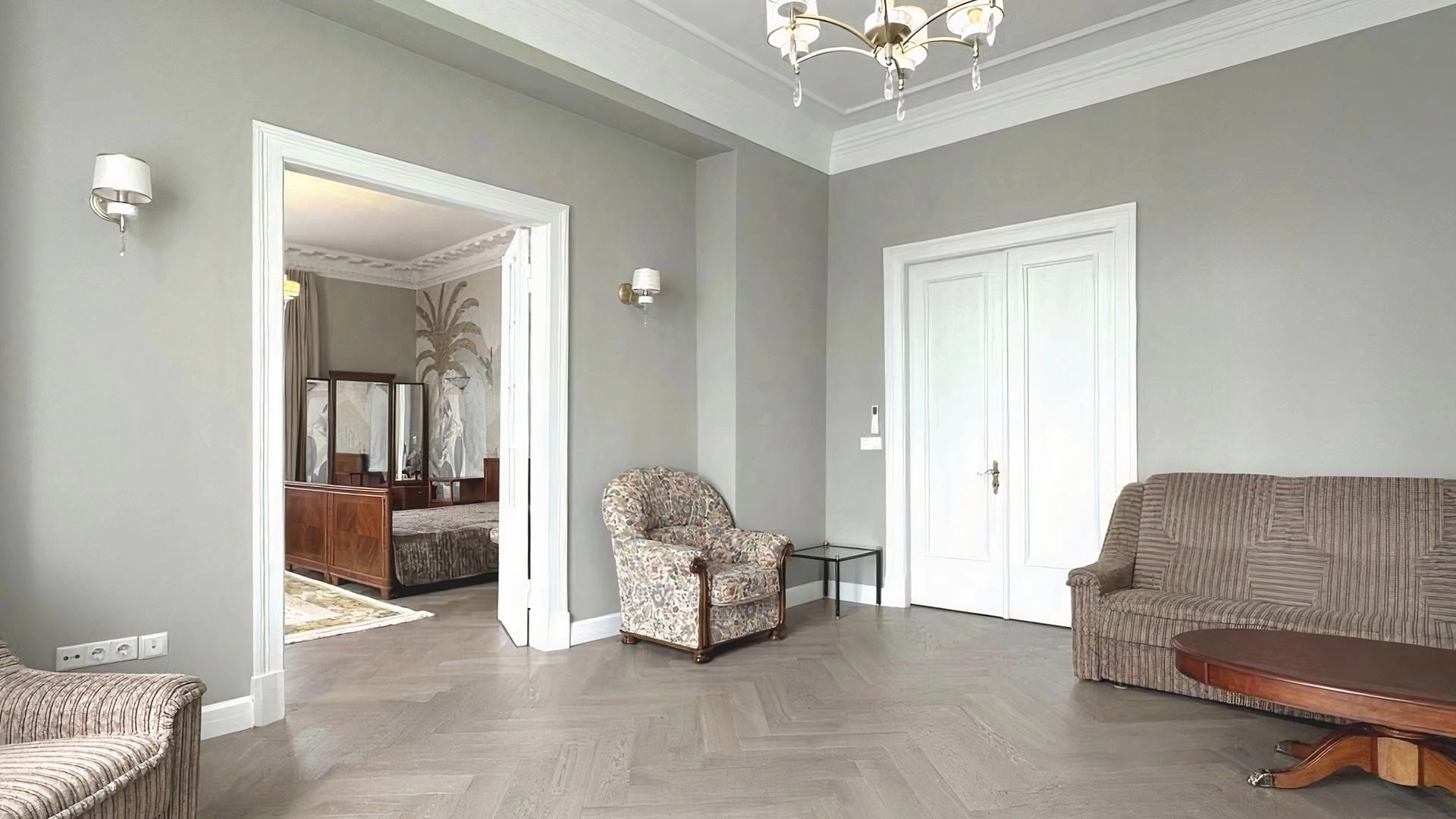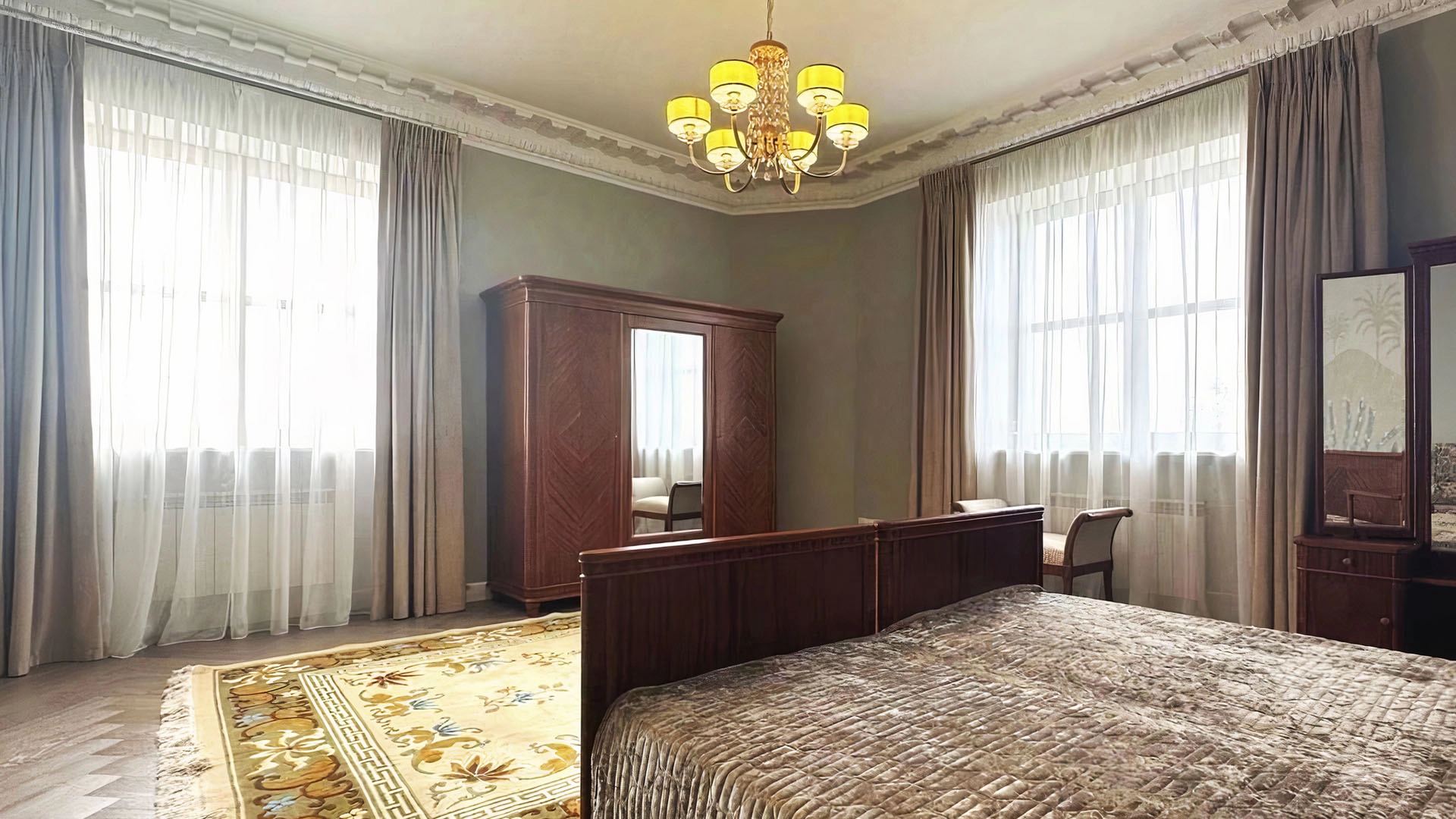 Видовая квартира в сталинском доме «Лаврушинский, 17» с видом на Третьяковскую галерею и Кремль. Квартира с 2-мя спальнями общей площадью 120 м² расположена на 7-м этаже. Выполнена новая премиальная отделка в светлых тонах. Высота потолков 3,2 метра. Планировка: 2 спальни, столовая, гостиная, кухня, санузел, прихожая, коридор, балкон. Квартира укомплектована мебелью и современной бытовой техникой. Установлена система кондиционирования, стиральная и посудомоечная машина.