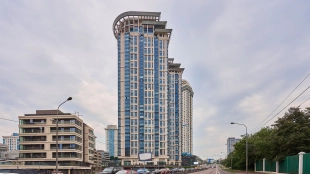 60-этажный многофункциональный центр с апартаментами и офисами. Небоскрёб выделяется ярким изумрудным остеклением и хайтек-решением. Башня овальной формы как будто встроена в прямоугольное здание под наклоном. Жилые апартаменты отделены от офисов и располагаются на верхних этажах.