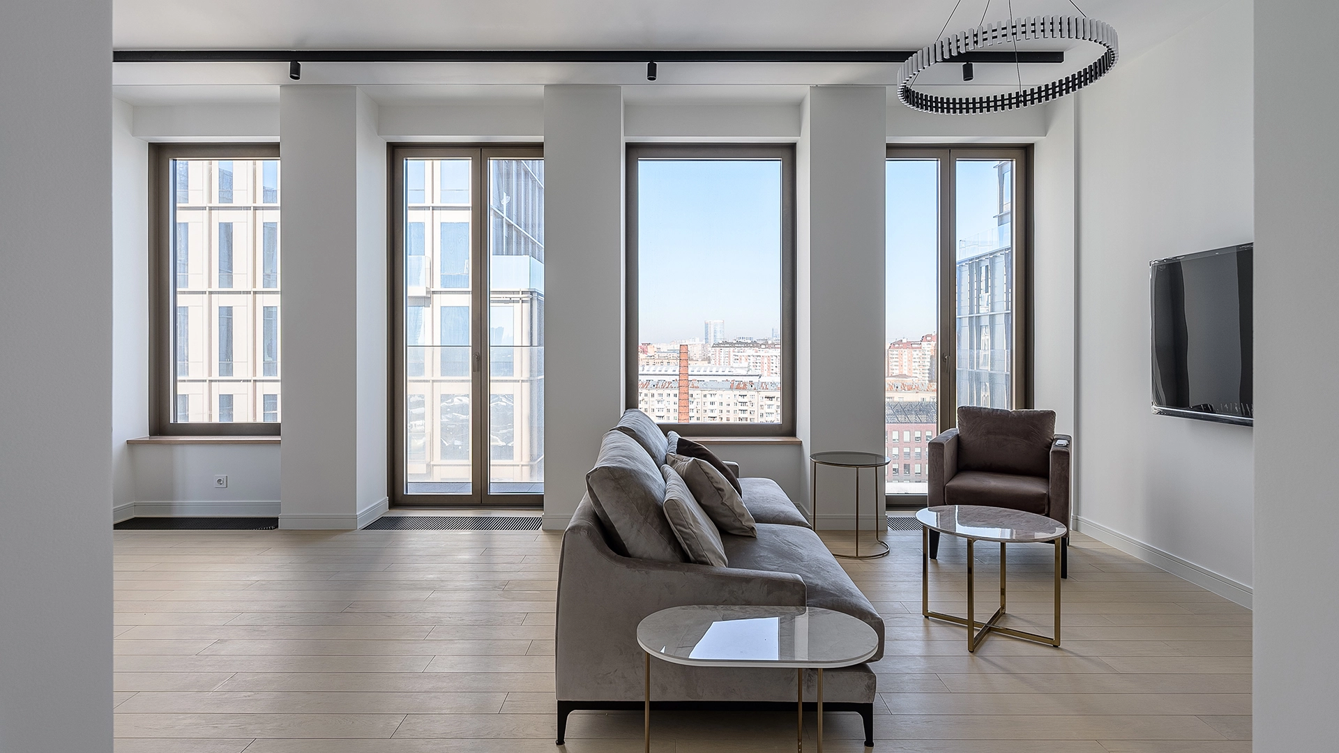 В ЖК Lucky доступны квартиры премиум-класса в ЦАО, которые отличаются современным дизайном и высококачественной отделкой, включая фасады жилых башен с панорамными окнами.