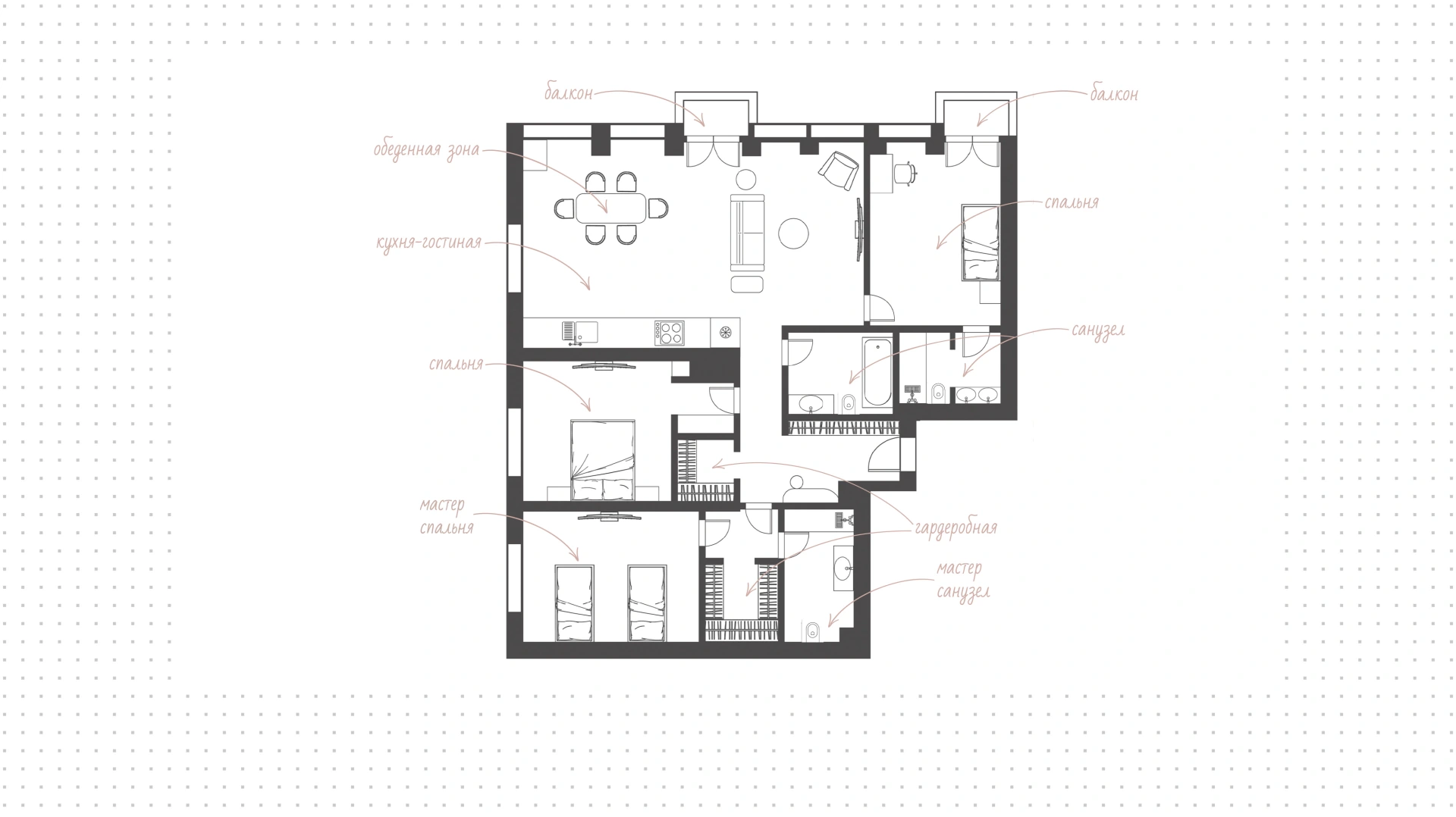 Квартира c 3 спальнями, 140 м² в ЖК Lucky, 13 этаж
