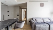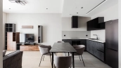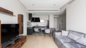 Апартаменты с 2-мя спальнями общей площадью 68 м² в премиальном доме «Поклонная, 9» рядом с Парком Победы и Кутузовским проспектом. Выполнена новая современная отделка, панорамные окна в пол. Спланирована гостиная с зоной кухни, спальня со своим санузлом, вторая спальня, второй санузел, холл. Апартамент укомплектован современной мебелью и бытовой техникой, установлена система «умный дом», встроенное кондиционирование. Из окон открывается вид на город.
