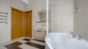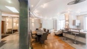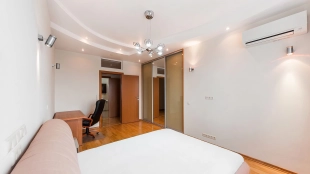 Спланирована кухня-гостиная с обеденной зоной, 3 мастер-спальни со своими санузлами, четвертая спальня, гардеробная, кладовая, прихожая. Квартира полностью меблирована и оборудована бытовой техникой, установлены кондиционеры. Окна ориентированы в тихий благоустроенный двор. Предусмотрено машиноместо в подземном паркинге.