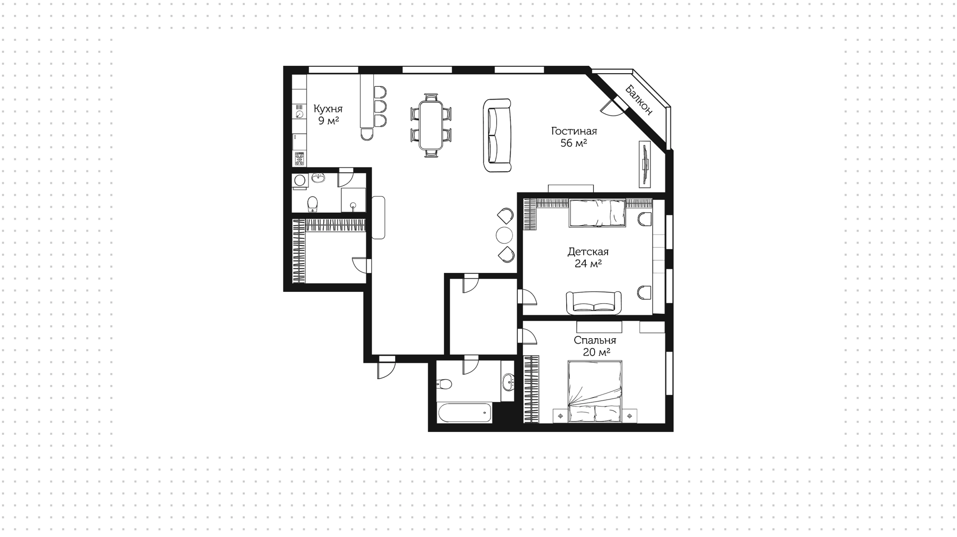 Квартира c 2 спальнями, 150 м² в ЖК Opera House, 3 этаж