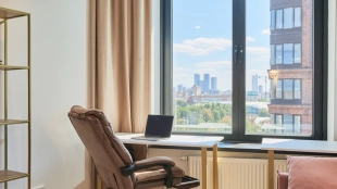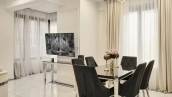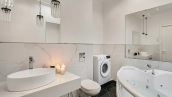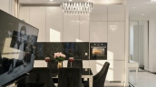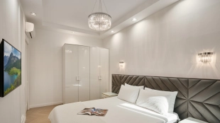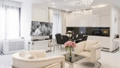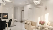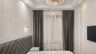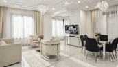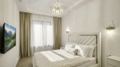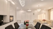 Апартаменты с 3 спальнями общей площадью 106 м² в квартале бизнес-класса «Царская площадь» на 11 этаже. Выполнен дизайнерский ремонт с преобладанием светлых оттенков. Минималистичные интерьеры дополнены многоуровневыми потолками с точечным освещением, стильными светильниками и люстрами, а также современной мебелью и техникой. Функциональная планировка включает кухню-гостиную, три спальни с отдельными санузлами, лоджию, холл и гостевой санузел. Окна ориентированы на две стороны света.