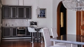 Видовой просторный апартамент площадью 139 м² в комплексе небоскрёбов премиум-класса «Федерация» в башне «Запад». Панорамное остекление и в сочетании с высотой на 56 этажа позволяют наслаждаться видами на Москву, башни «Москва-Сити» и потрясающими закатами. Дизайнерский интерьер оформлен в стиле современной классики, в отделке использована венецианская штукатурка, натуральный американский орех.