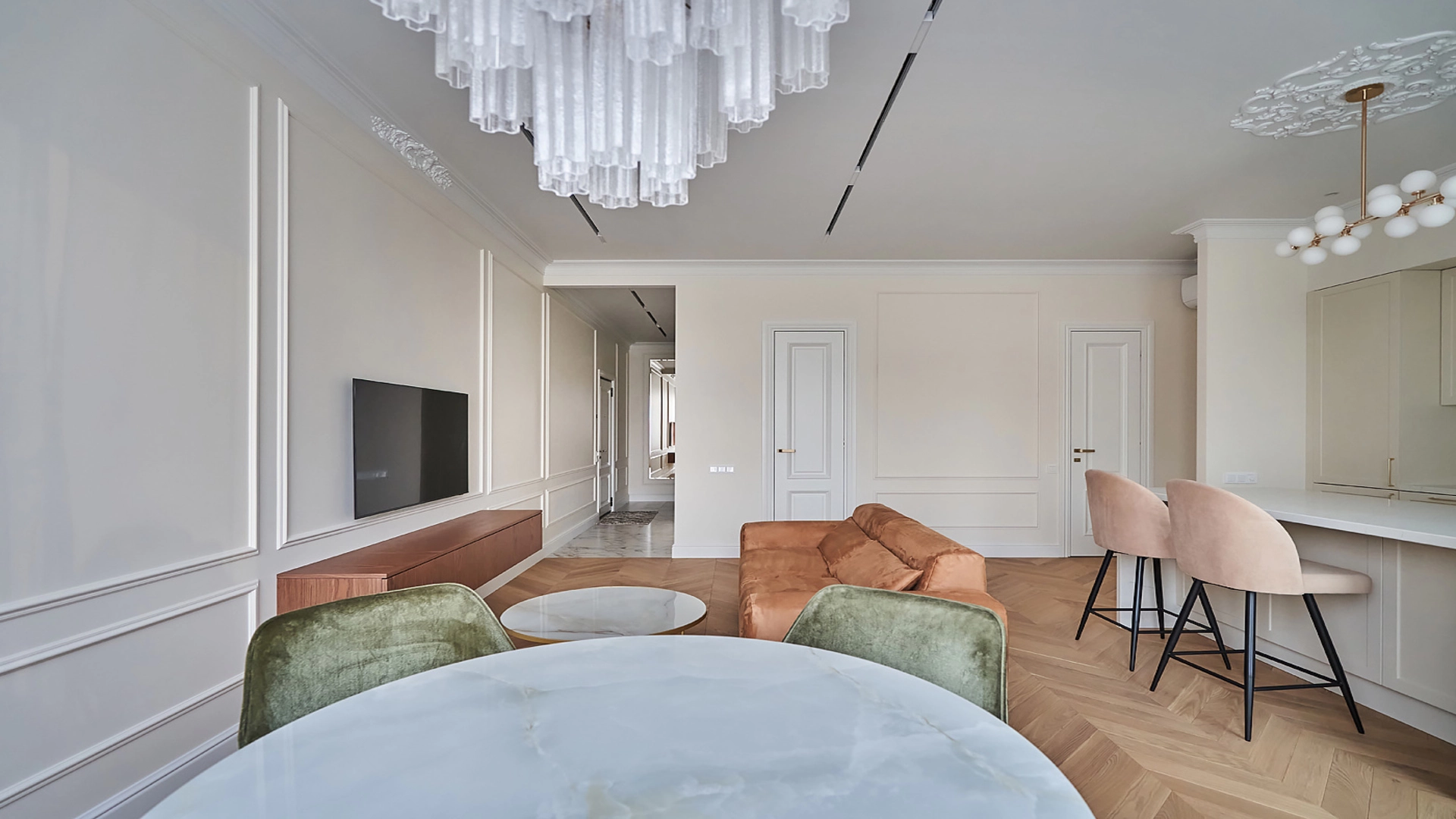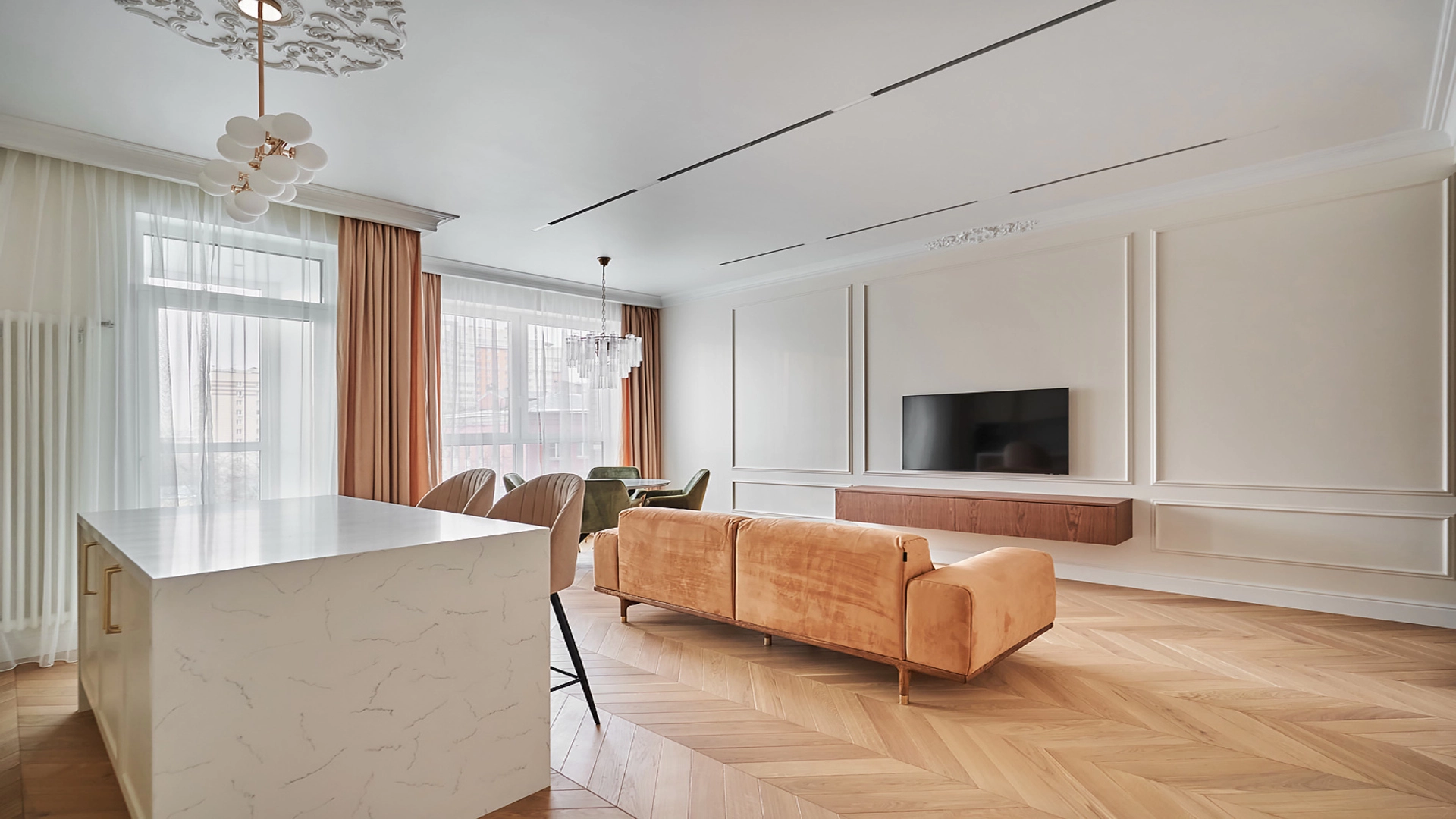 Квартира с 1-й спальней общей площадью 86 м² на шестом этаже комплекса «Сити Парк». Выполнен дизайнерский ремонт из экологичных материалов в стиле «неоклассика» с элементами лепнины. В квартире спланирована просторная кухня-гостиная, оборудованная бытовой техникой Bosсh и мягкой мебелью, светлая спальня, 2 санузла, гардеробная, кладовая-постирочная. Из окон открываются панорамные виды на город. В стоимость арены входят коммунальные платежи. В паркинге есть 1 машиноместо.