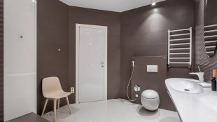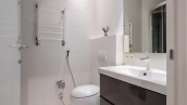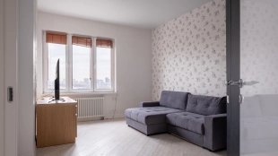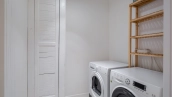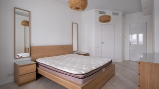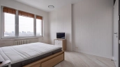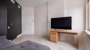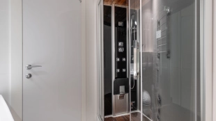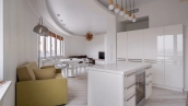 Уютная гостиная в эркерными окнами представлена зоной отдыха и имеет выход в кухню, оснащенную бытовой техникой — посудомоечная машина, холодильник. В одной из трех спален есть лоджия. В санузлах установлена душевая кабина, ванна, стиральная машина, сушильная машина, уложен подогрев полов. Два машиноместа в подземном паркинге входят в стоимость.