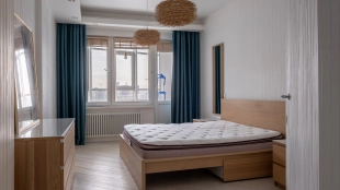 Видовая квартира с 3-мя спальнями общей площадью 165 м² в комплексе премиум-класса «Зодиак». В квартире выполнен современный ремонт с использованием высококачественных материалов — дерево, стекло. Квартира полностью меблирована, проведен высокоскоростной интернет и телевидение. Благодаря панорамным окнами с видами на город, в квартире много света.