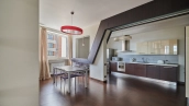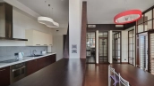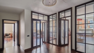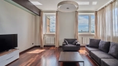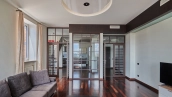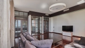Видовая квартира с 2-мя спальнями общей площадью 135 м² в комплексе бизнес-класса «Камелот» рядом с парком Усадьба Трубецких в Хамовниках. Выполнена светлая дизайнерская отделка с использованием натурального дерева, интерьер оформлен в современном стиле. Из окон 12 этажа открывается панорамный вид на город.