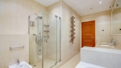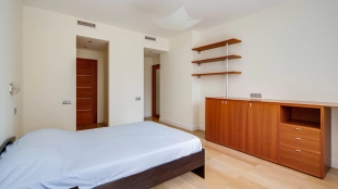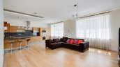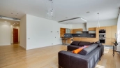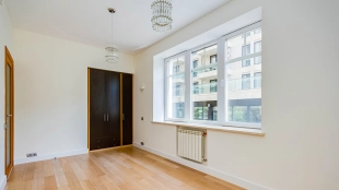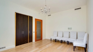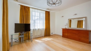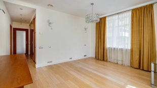 Квартира с 4-мя спальнями общей площадью 204 м² в комплексе «Новопесковский». Выполнена современная отделка с использованием натурального дерева. Интерьер оформлен в приятных светло-бежевых тонах, полы выложены инженерной доской. В гостиной установлен большой мягкий диван, кухня оснащена встроенной техникой и барной стойкой.