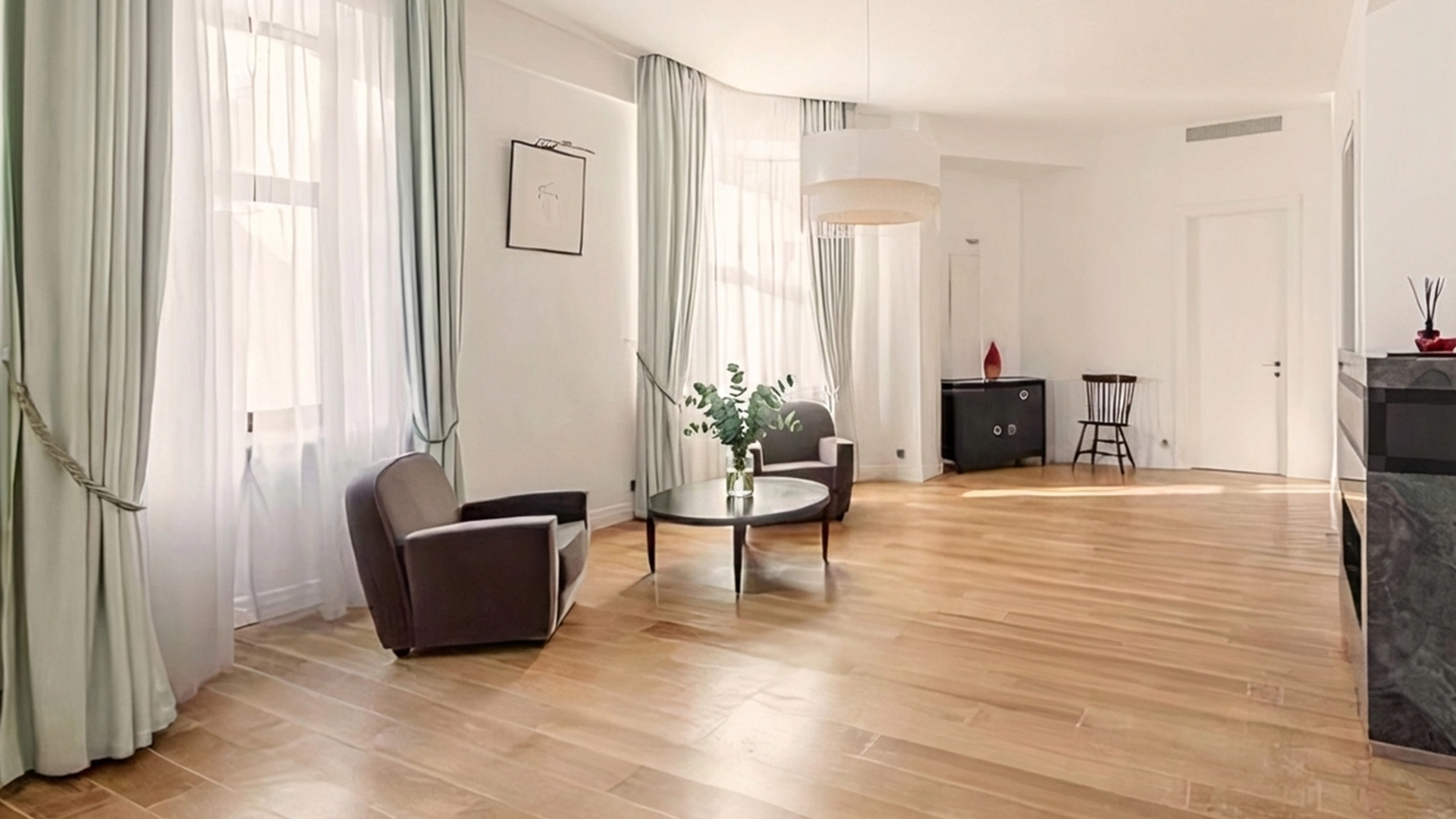 Просторная квартира площадью 136 м² в клубном доме «Грин Плаза» в Пресненском районе. Светлый лаконичный интерьер оформлен во французском стиле. Планировка: гостиная с биокамином, кухня, 2 спальни со своими ванными комнатами, кабинет, гостевой санузел, постирочная, холл. Квартира полностью укомплектована мебелью и бытовой техникой. Установлена система кондиционирования, стиральная и посудомоечная машина. Из окон открывается вид во двор. Можно арендовать машино-место в подземном паркинге за отдельную плату.