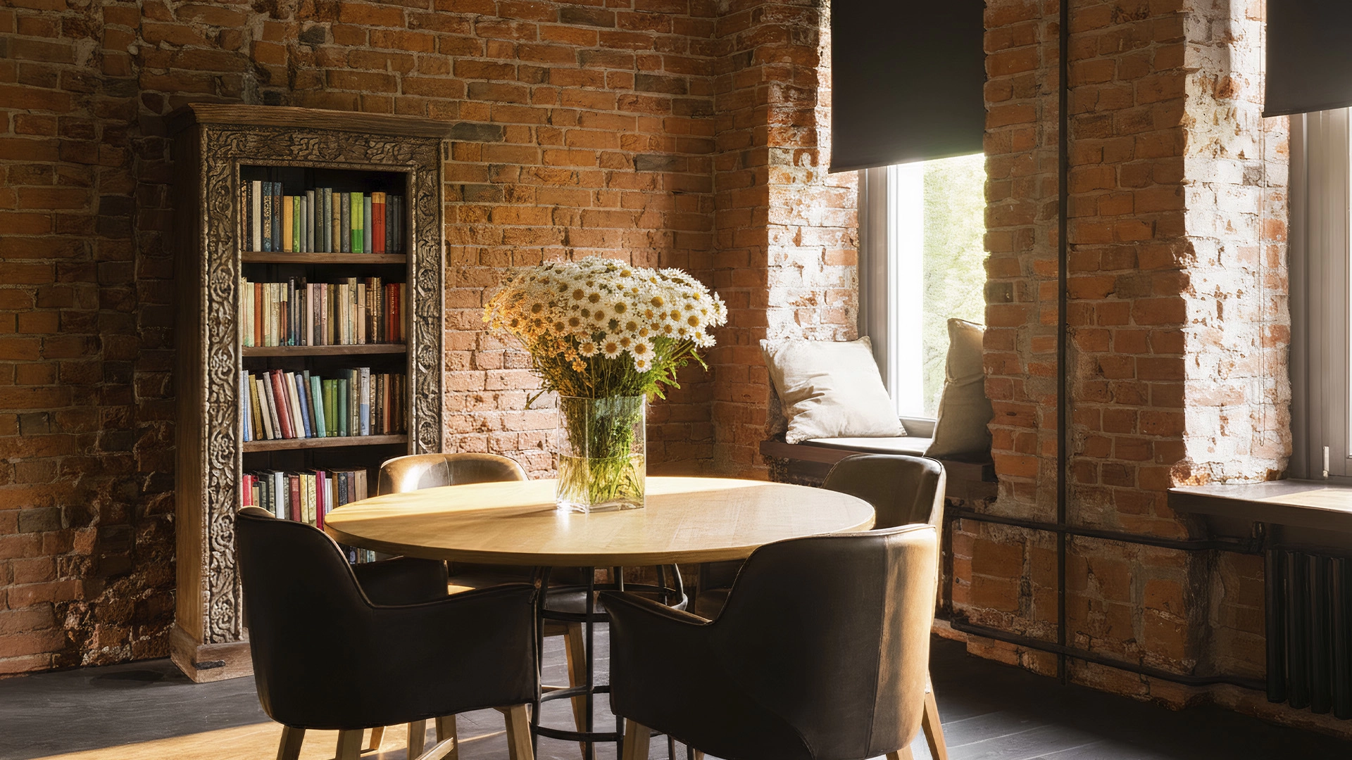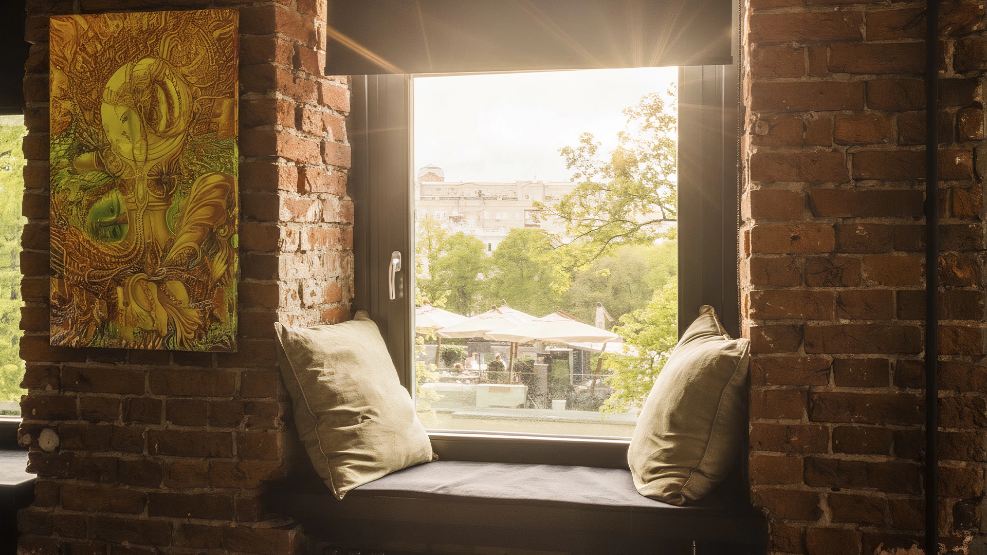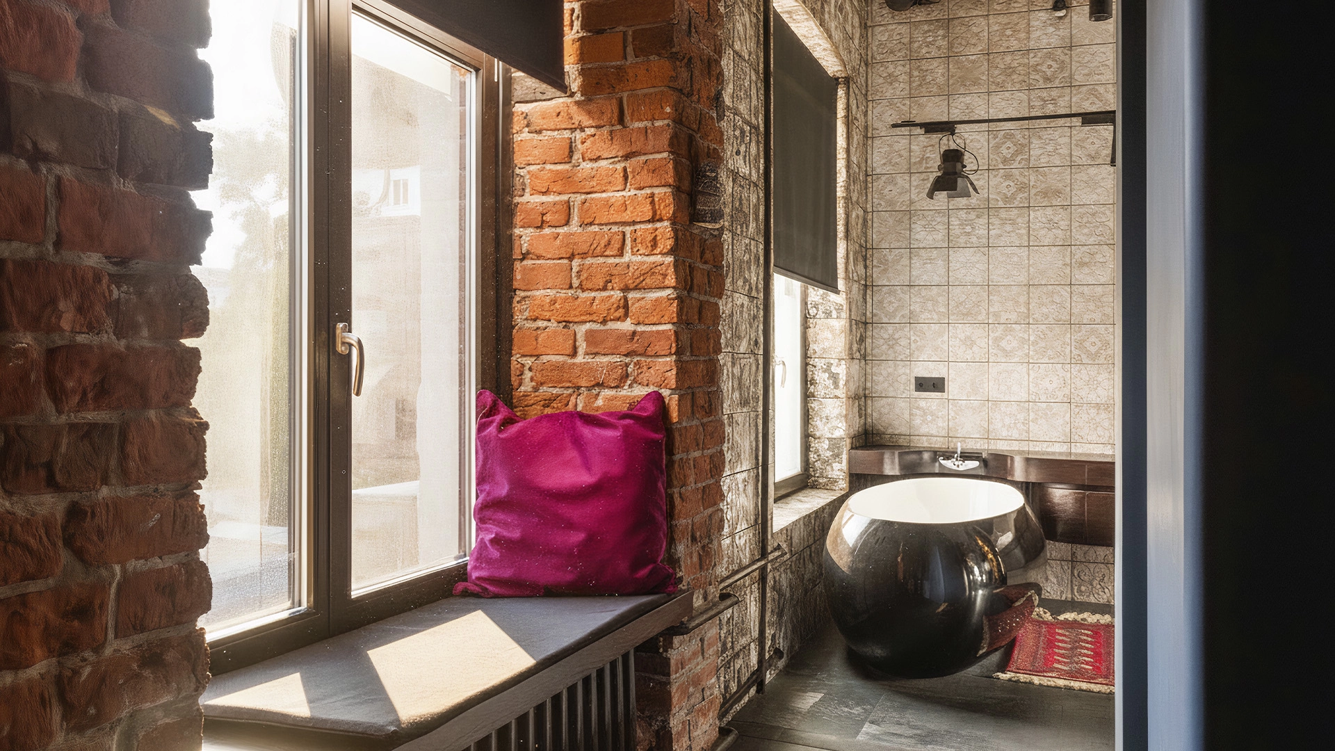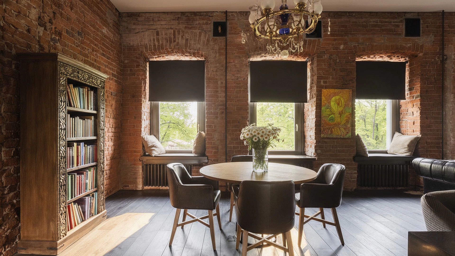 Дизайнерская квартира площадью 95 м² с видом на Патриарший пруд. Интерьер оформлен в стиле «лофт», украшен авторскими светильниками и картинами. В отделке использован классический красный кирпич, натуральное дерево. Спланирована просторная гостиная-столовая-кухня с 4-мя окнами, спальня со своей гардеробной и ванной комнатой, санузел с душевой.
