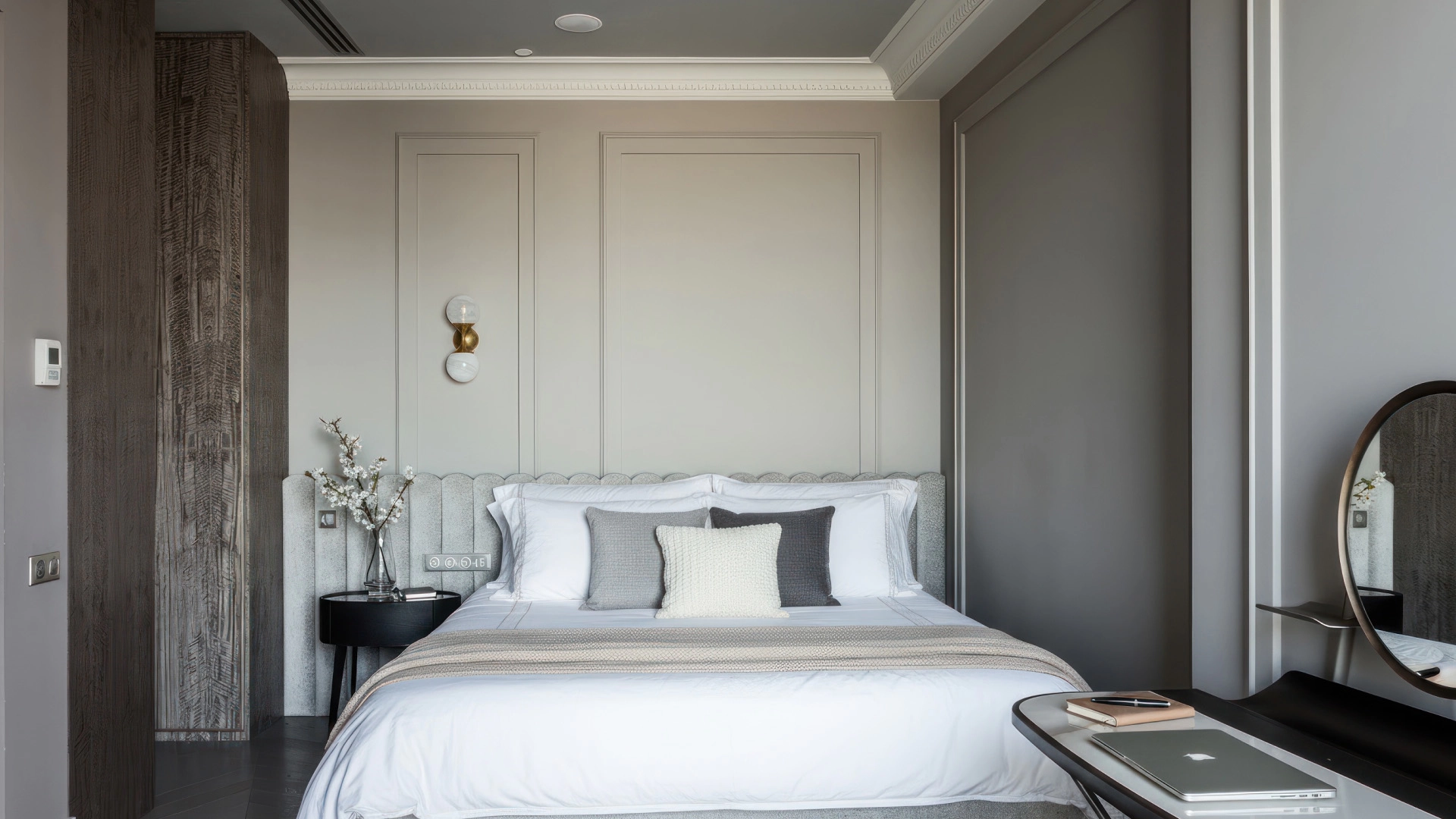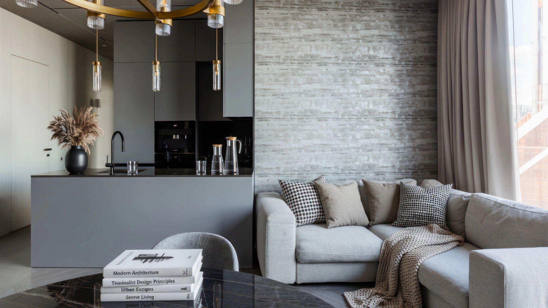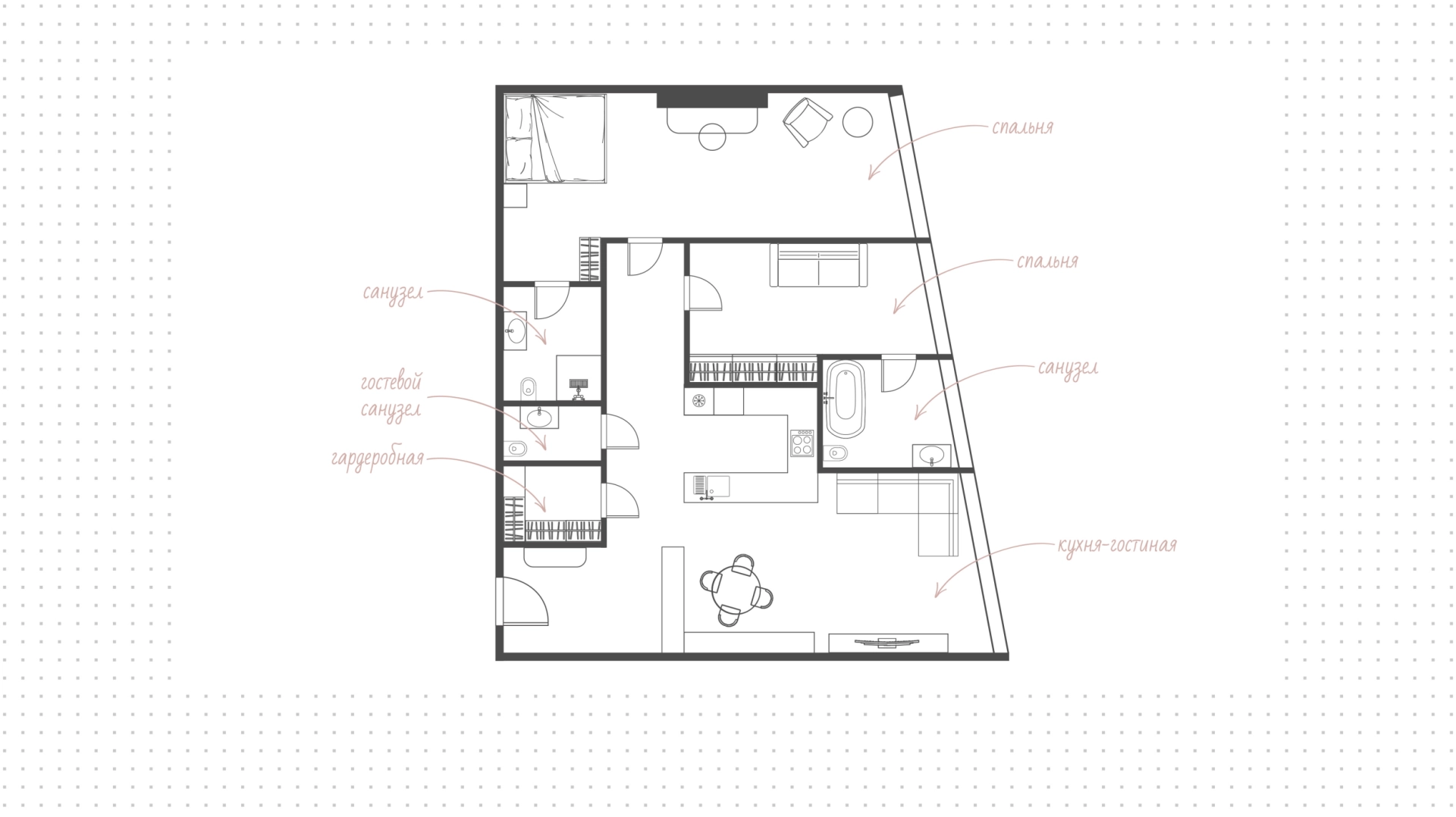 Видовые апартаменты с 2-мя спальнями общей площадью 110 м² в башне «Федерация». Выполнена премиальная дизайнерская отделка, в отделке использовано натуральное дерево. Иинтерьер оформлен в минималистичным современном стиле. Из окон открываются панорамные виды на реку, гостиницу «Украина» и центр города.