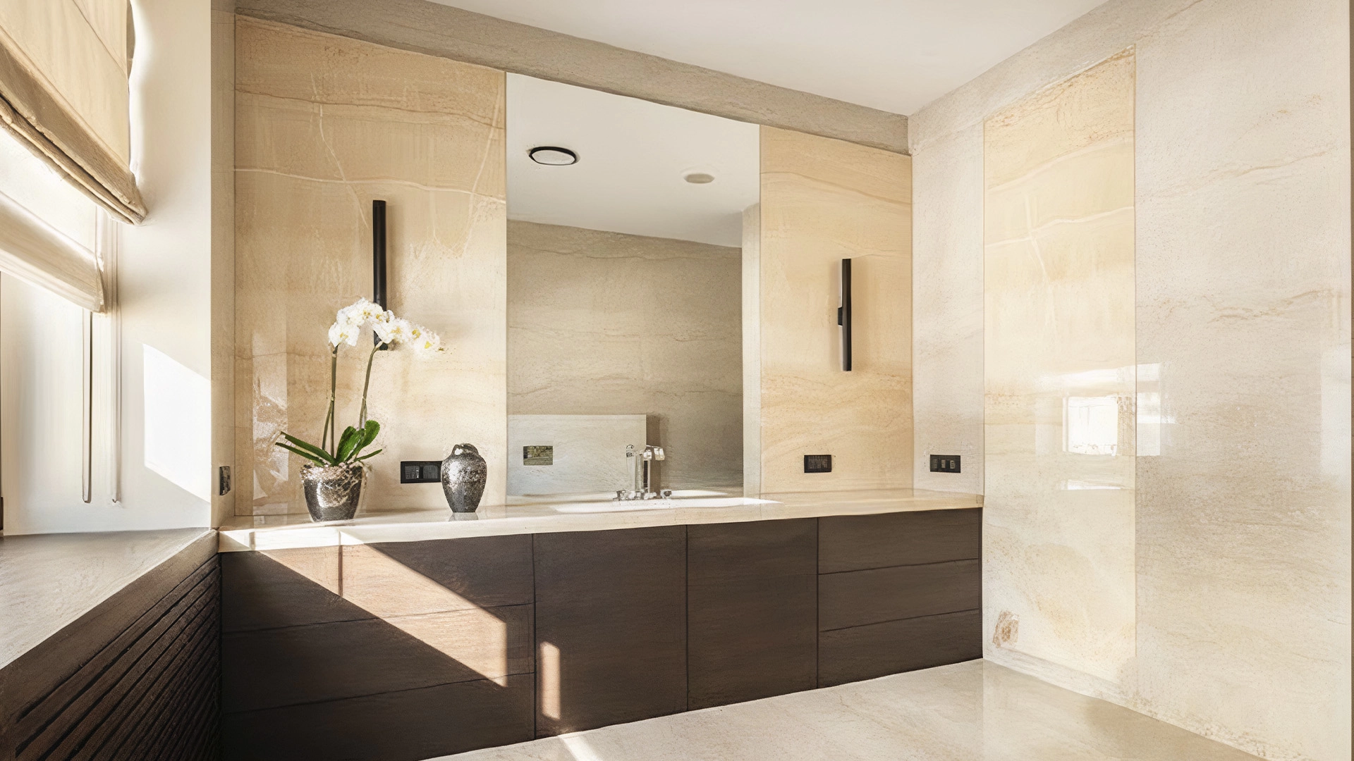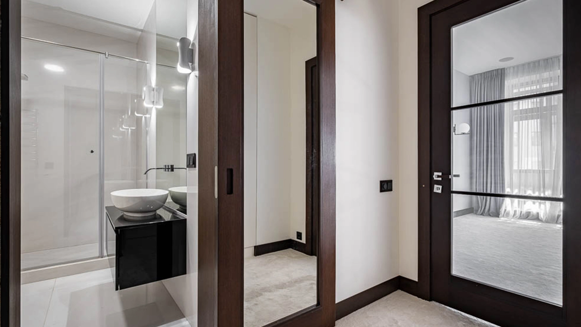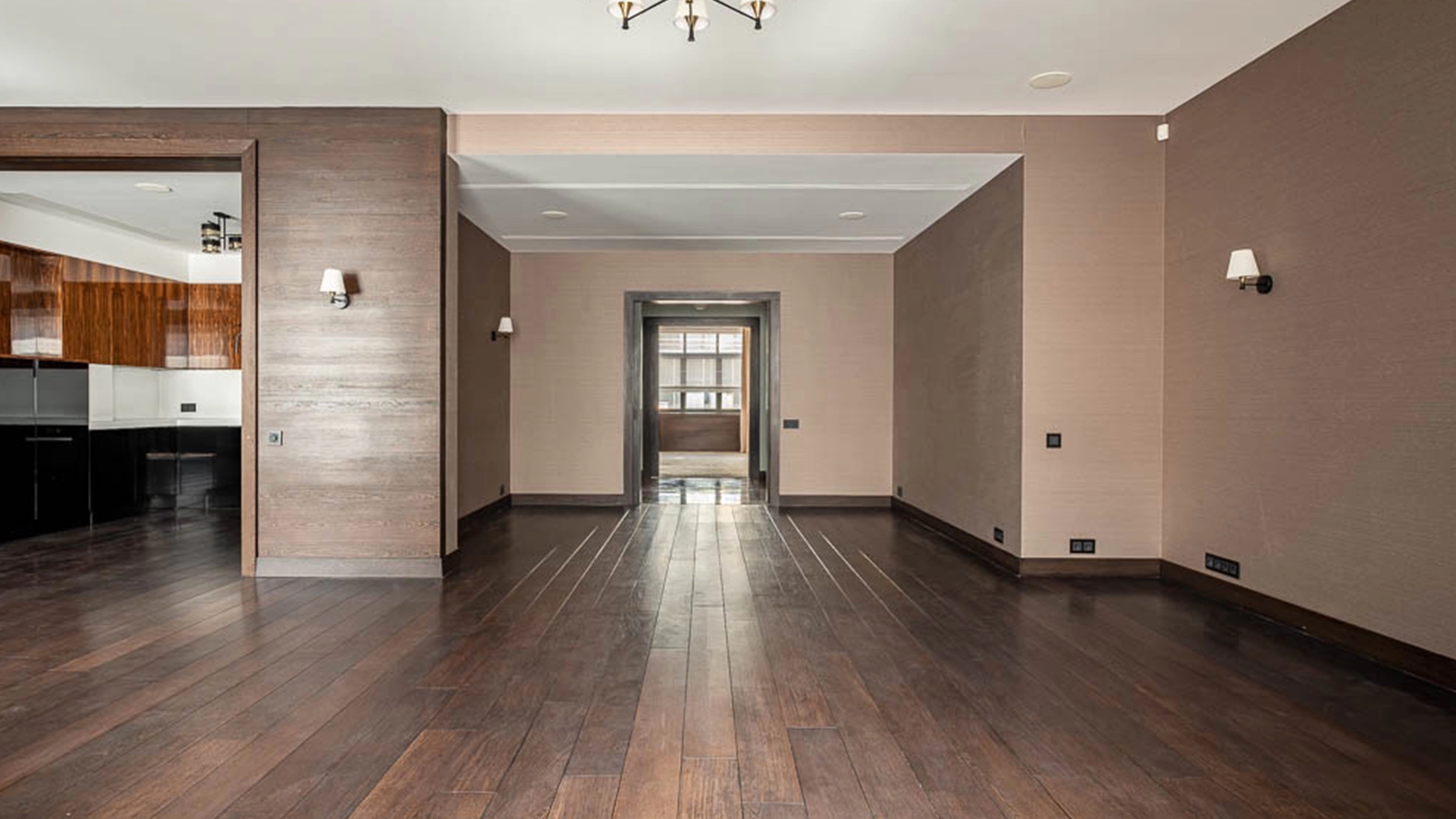 Квартира с 2-мя спальнями общей площадью 260 м² в комплексе «3-я Тверская-Ямская, 25» в 15 минутах ходьбы от Патриарших прудов. Выполнен дизайнерский ремонт в современном стиле, в отделке использовано натуральное дерево. Квартира без мебели оснащена бытовой техникой — посудомоечная машина, холодильник, кондиционер. В санузлах установлен бойлер, душевая кабина, ванна, уложены теплые полы.