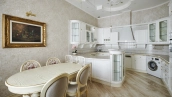 Уютная квартира площадью 150 м² в доме на знаменитой Тверской улице в центре Москвы. Выполнен светлый ремонт в классическом стиле. Высота потолков 3,2 метра. Спланирована просторная гостиная, кухня-столовая, 2 спальни, кабинет, ванная комната с ванной и душевой, второй санузел с душем, холл. Окна выходят в тихий внутренний двор.