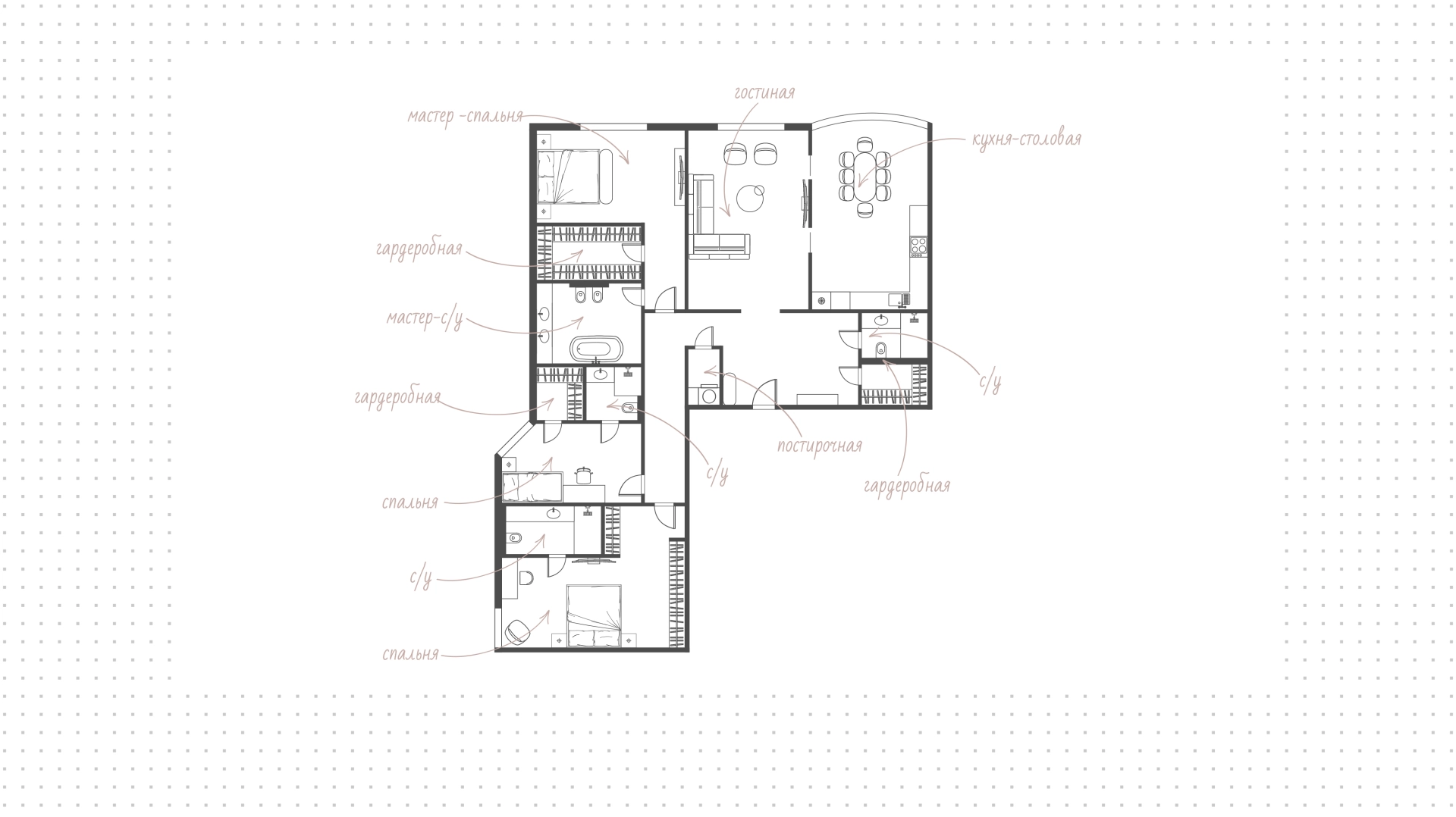 Квартиры c 3 спальнями, 183 м² в ЖК Большой Сергиевский, 5, 4 этаж