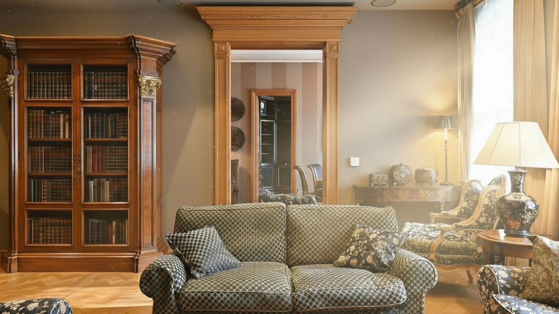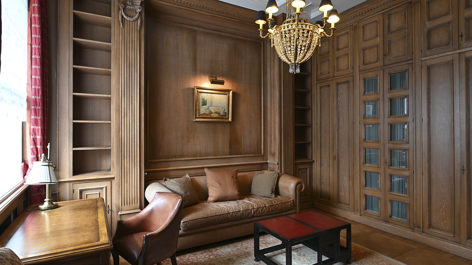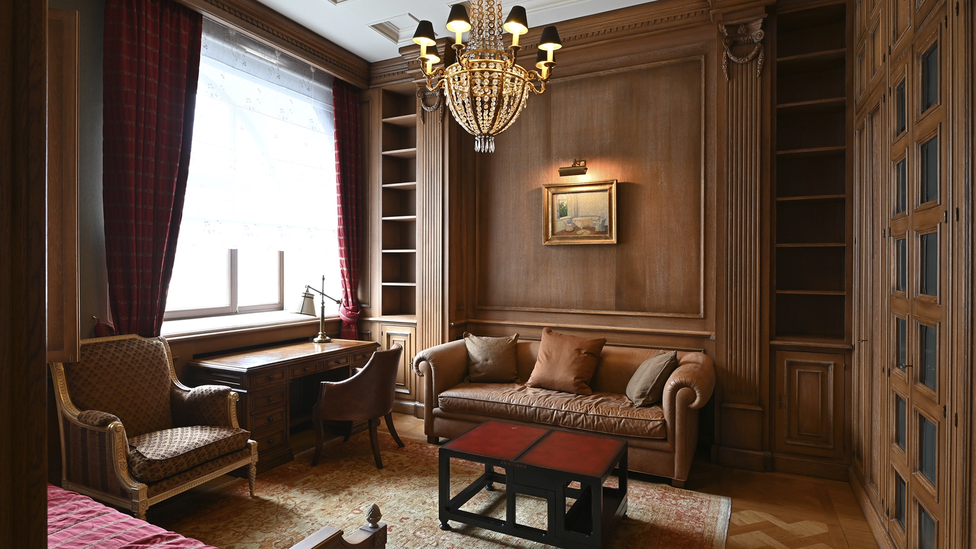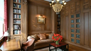 Квартира площадью 162 м² в изысканном стиле американской классики, с элементами антиквариата, в «Доме со львами» на Малой Молчановке 8с1. Тихие переулки Арбата. Планировочное решение: гостиная с декоративным камином, кухня-столовая, мастер-блок со своим санузлом и гардеробной, спальня, кабинет, caнузел. Кабинет можно использовать как гостевую. Высота потолков более 3,5 метров. Окна выходят на здание посольства Бельгии и во внутренний двор. Есть парковочное место.