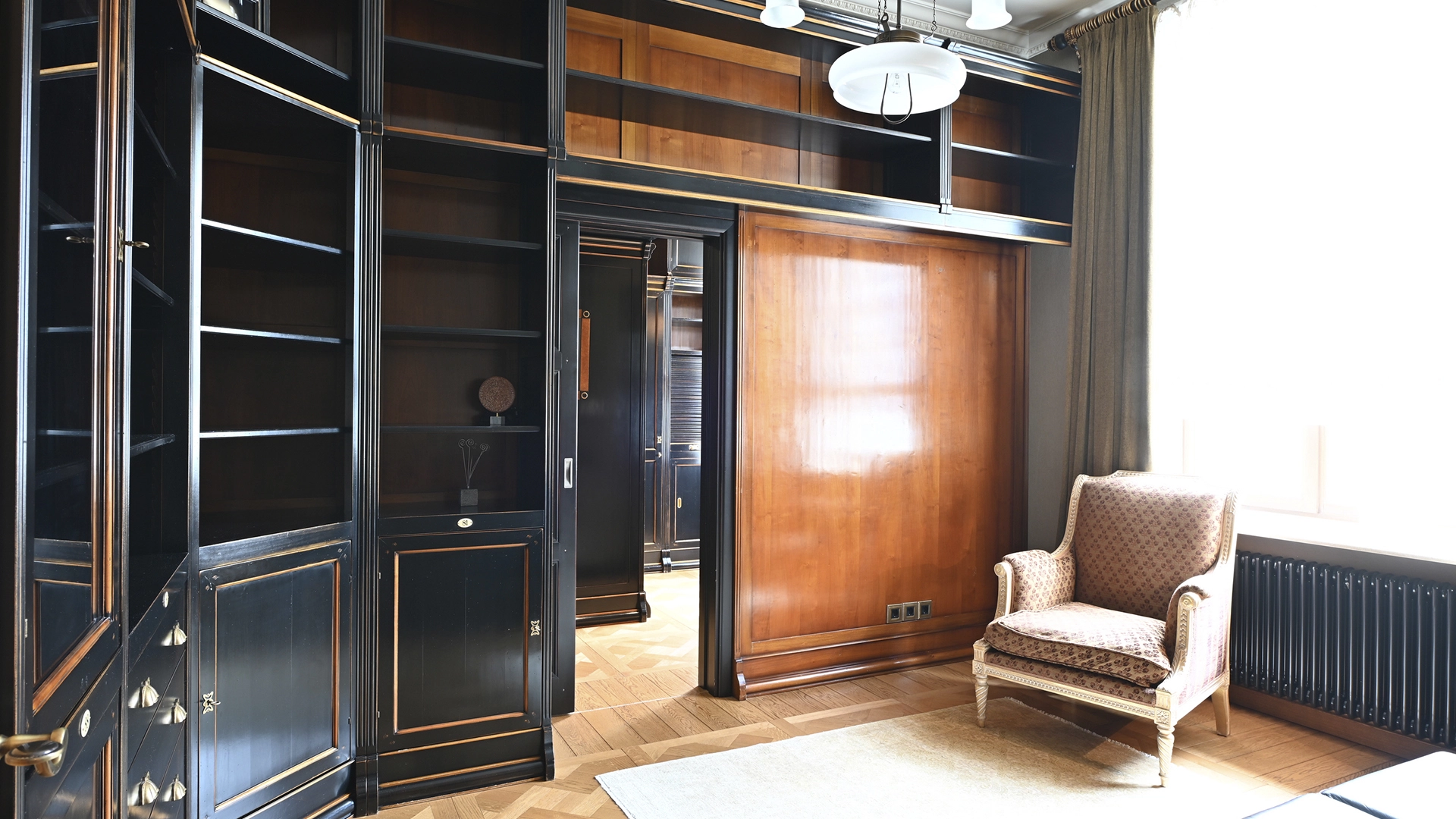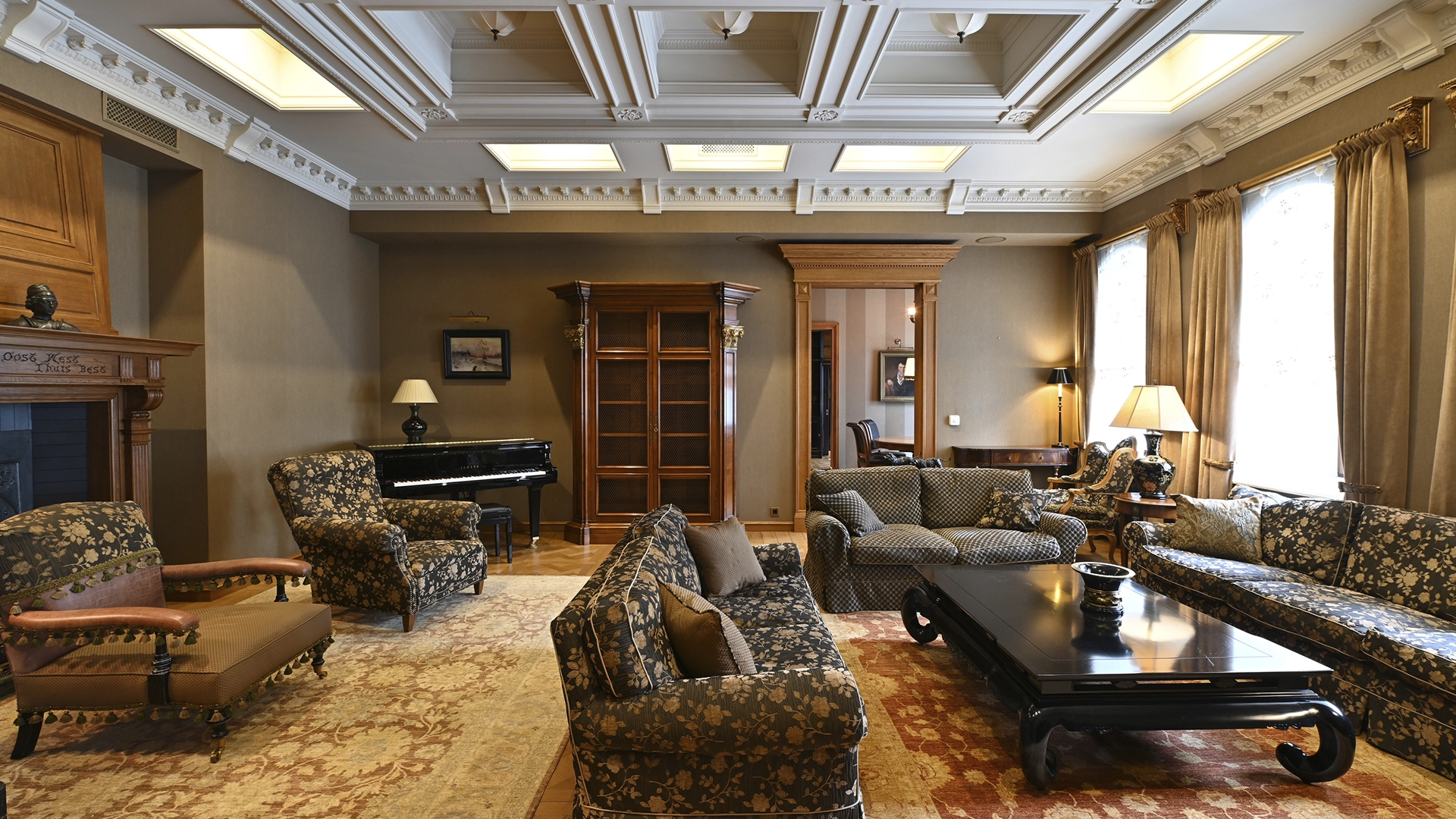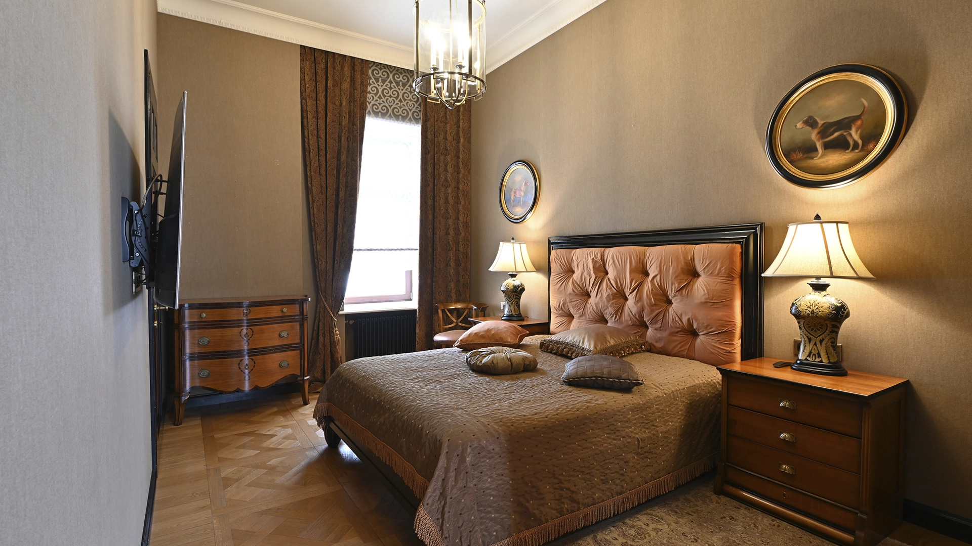 Квартира площадью 162 м² в изысканном стиле американской классики, с элементами антиквариата, в «Доме со львами» на Малой Молчановке 8с1. Тихие переулки Арбата. Планировочное решение: гостиная с декоративным камином, кухня-столовая, мастер-блок со своим санузлом и гардеробной, спальня, кабинет, caнузел. Кабинет можно использовать как гостевую. Высота потолков более 3,5 метров. Окна выходят на здание посольства Бельгии и во внутренний двор. Есть парковочное место.