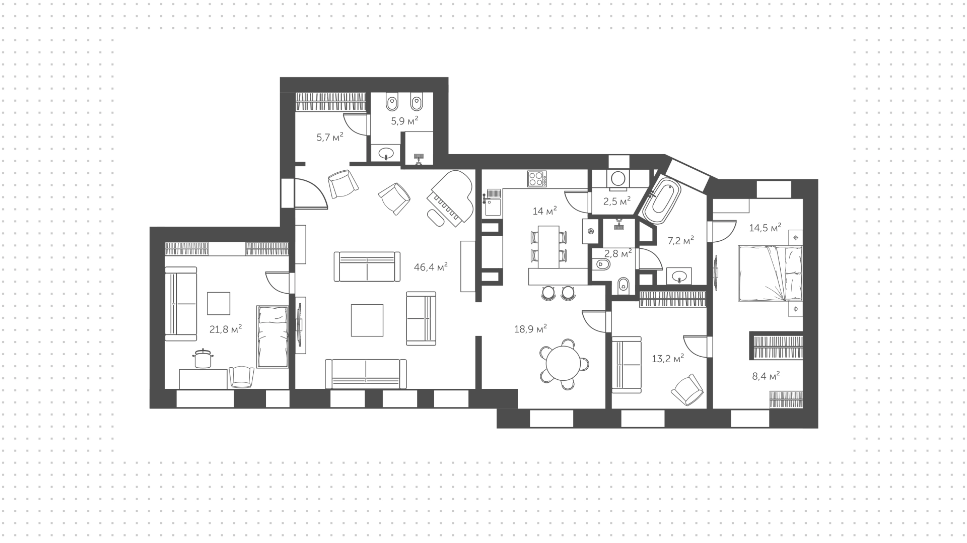 Квартиры c 3 спальнями, 162 м² в ЖК Дом со львами, 2 этаж