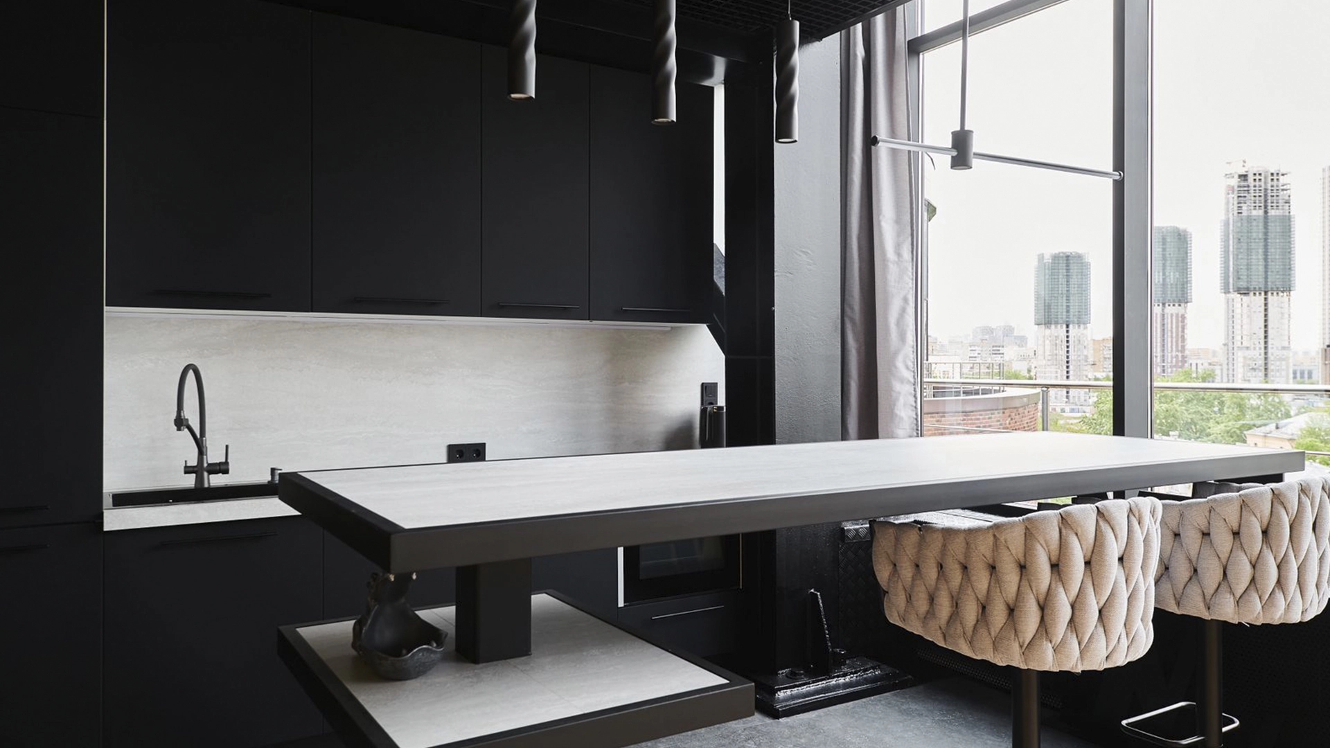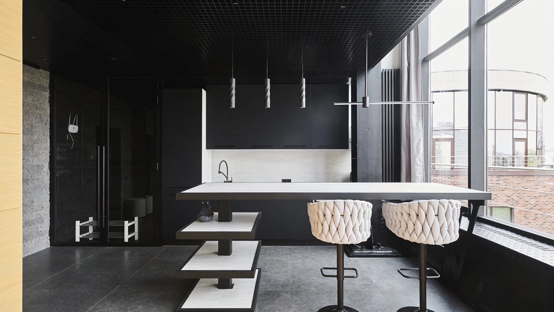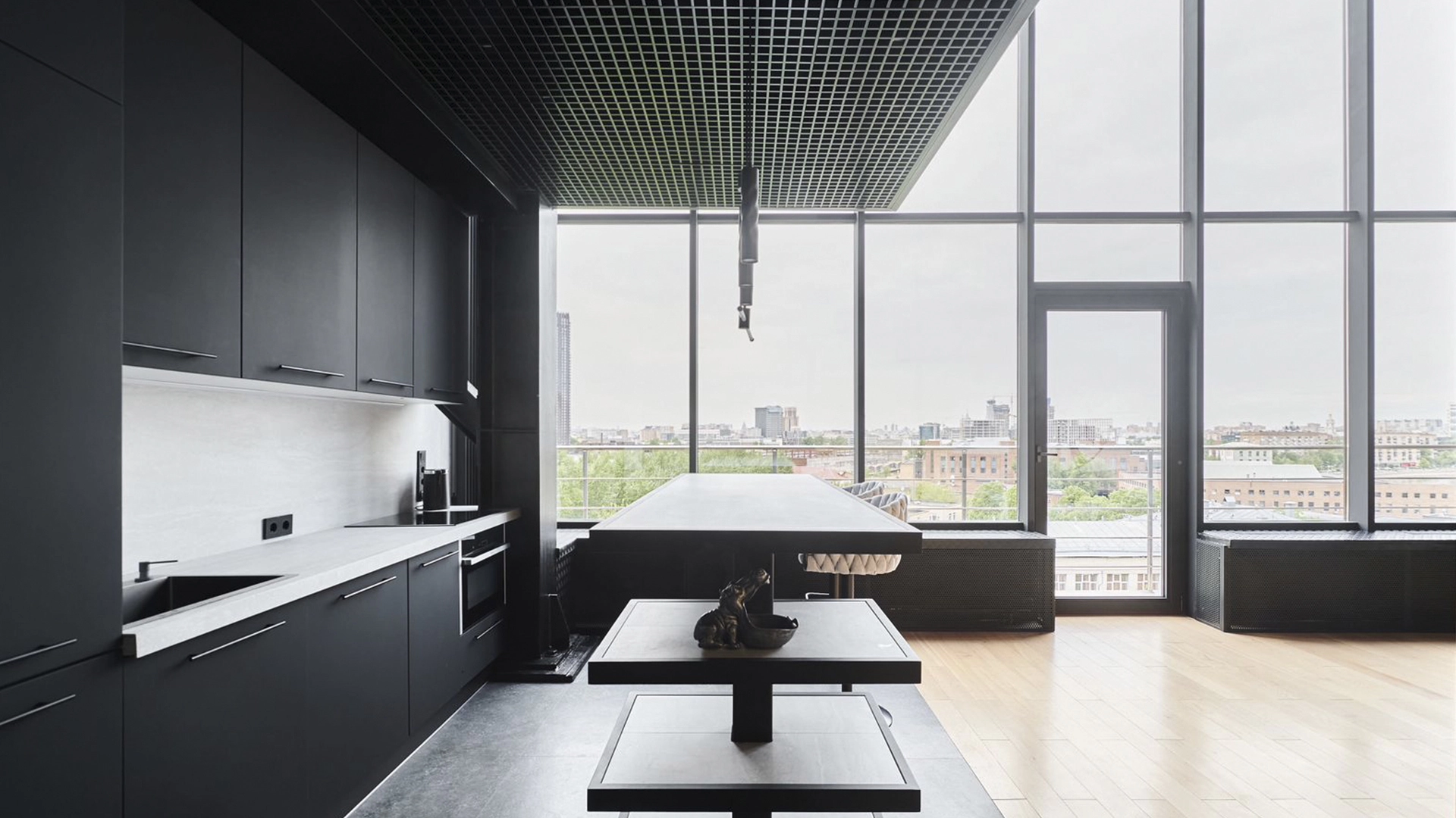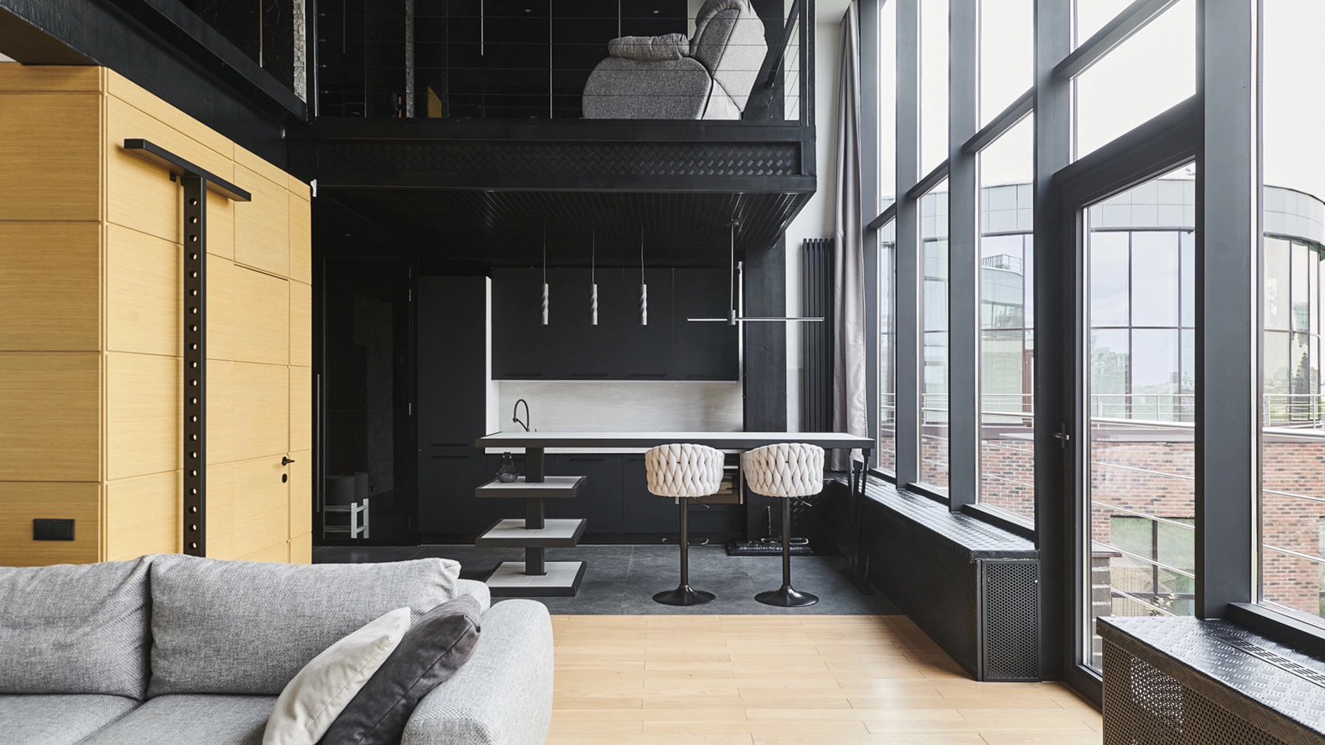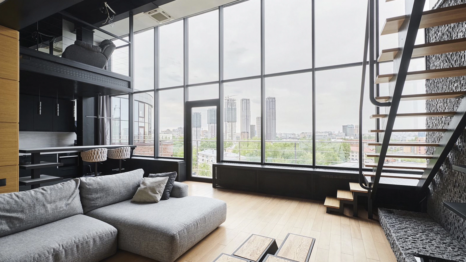 Видовые апартаменты в стиле «лофт» с террасой и панорамными окнами, 130 м²