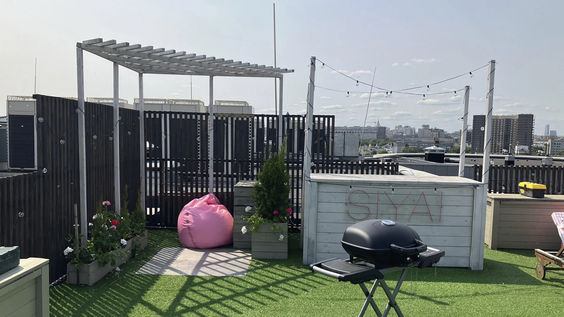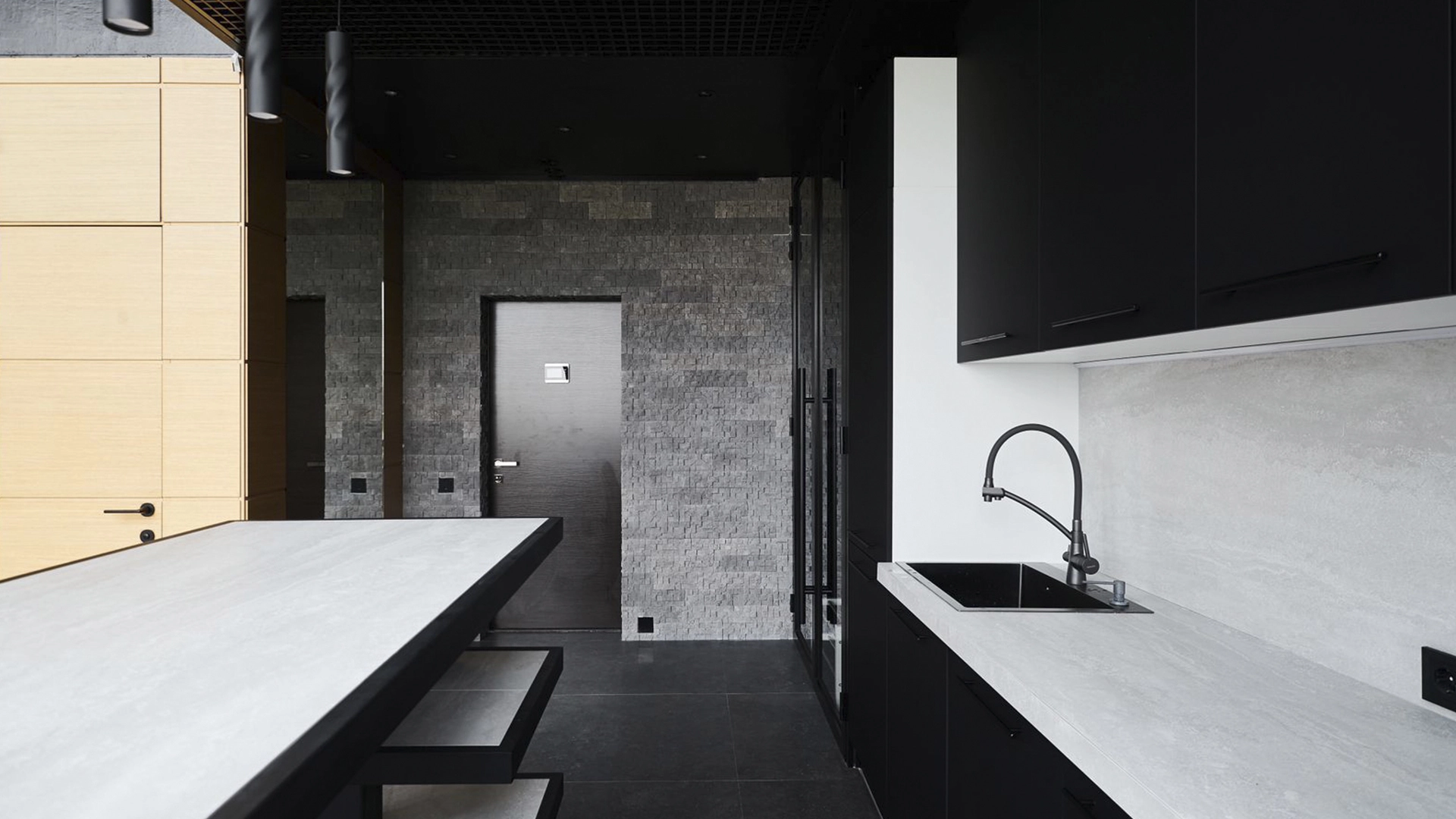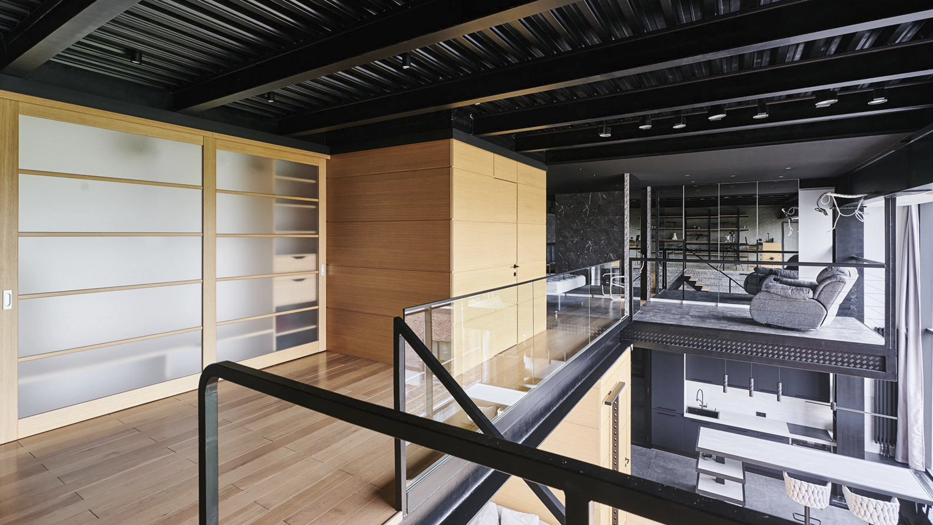 На 1-м уровне обустроена уютная гостиная с кухонной и обеденной зоной, санузел, гардеробная, холл. На 2-м уровне — спальня, зона кабинета и ванная комната. Лофт полностью укомплектован мягкой мебелью, бытовой техникой премиум-класса и авторскими предметами интерьера. С террасы открываются панорамные виды на город и Москву-реку.