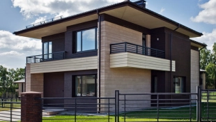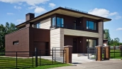 При строительстве применяются качественные и долговечные материалы: кирпич, архитектурный бетон, лиственница, натуральная черепица и деревянные стеклопакеты.
