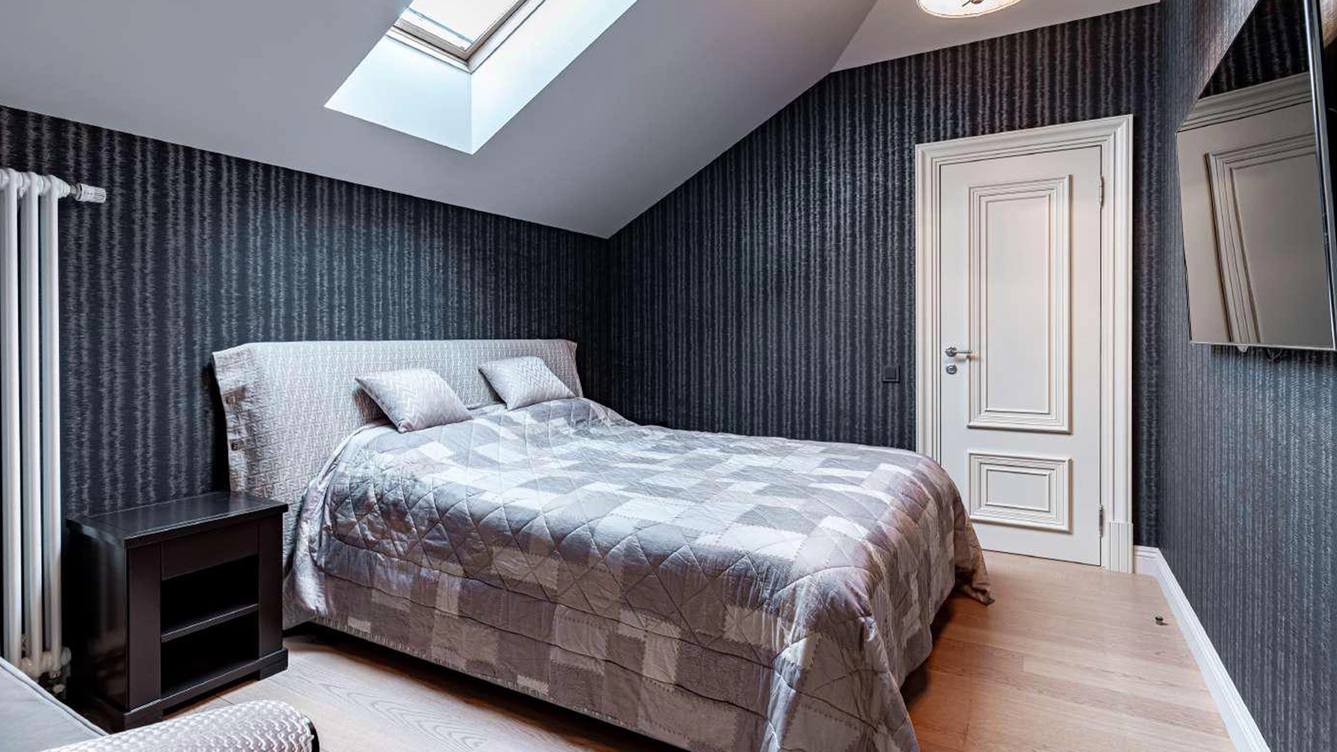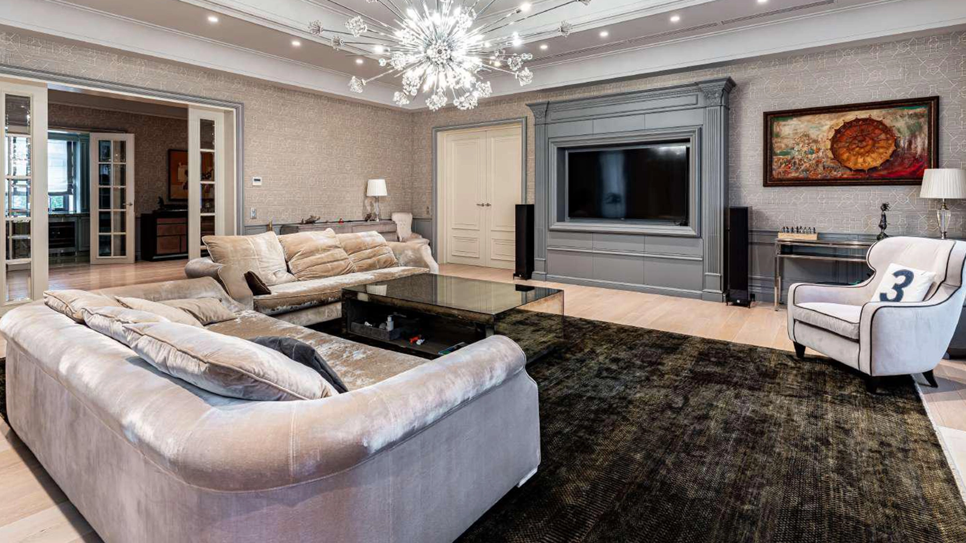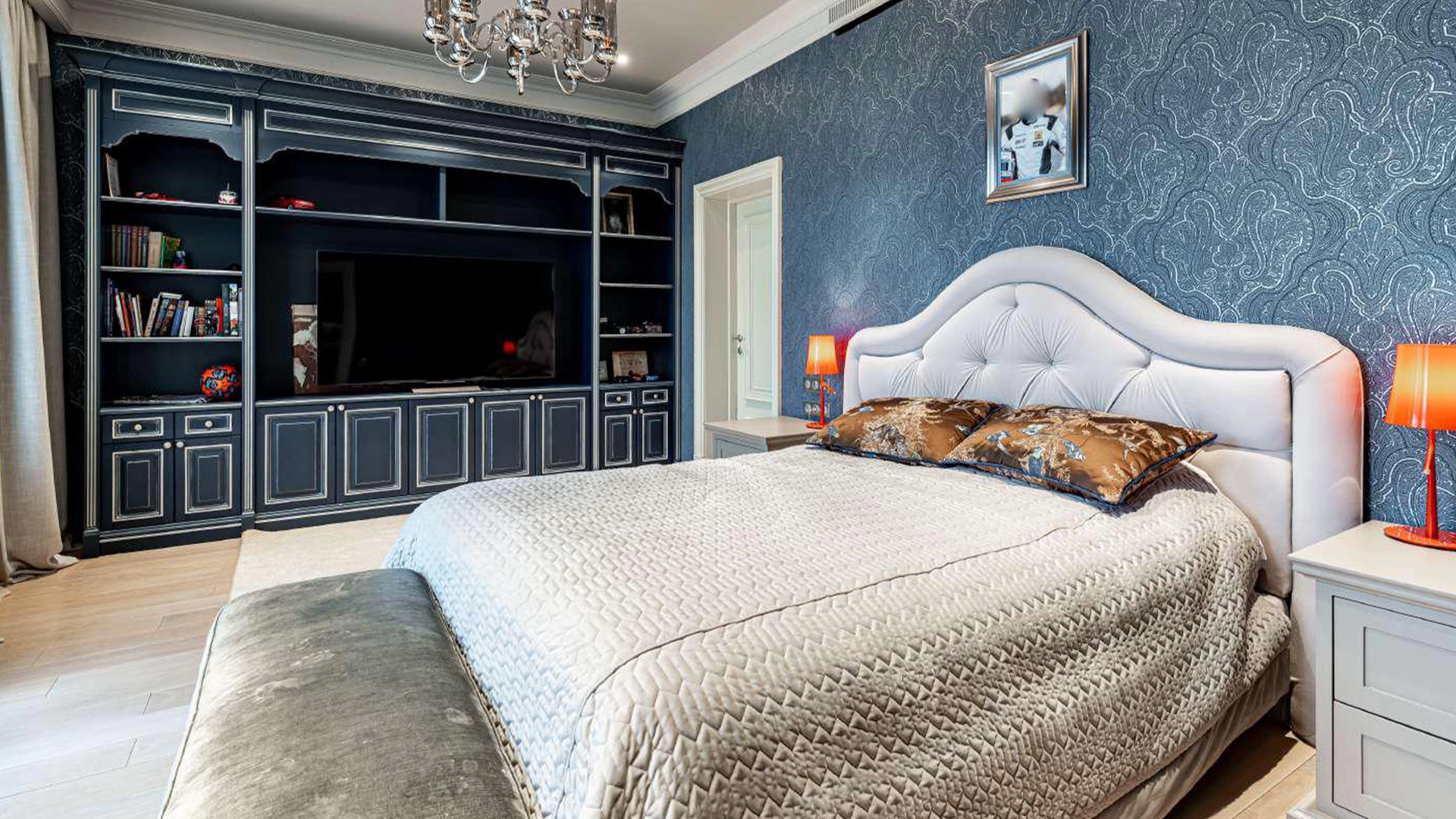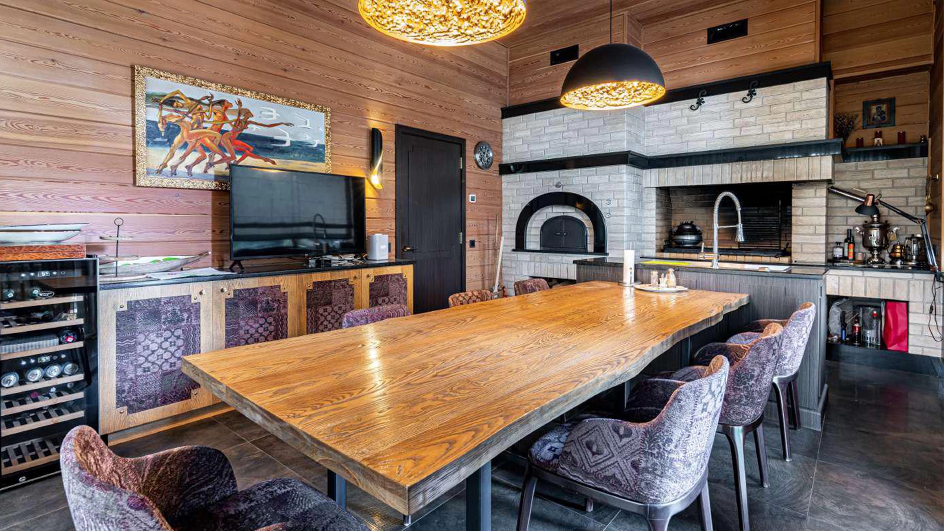 Для дополнительного комфорта оборудована система приточно-вытяжной вентиляции с кондиционированием. Планировка четырехуровневой резиденции включает просторную гостиную с камином и выходом на крытую летнюю террасу, кухню-столовую, 5 спален, кабинет, игровую, домашний кинотеатр, оружейную комнату и несколько гардеробных. Также в контуре дома находятся блок для персонала и 2 гаража, рассчитанные на 6 машин.
