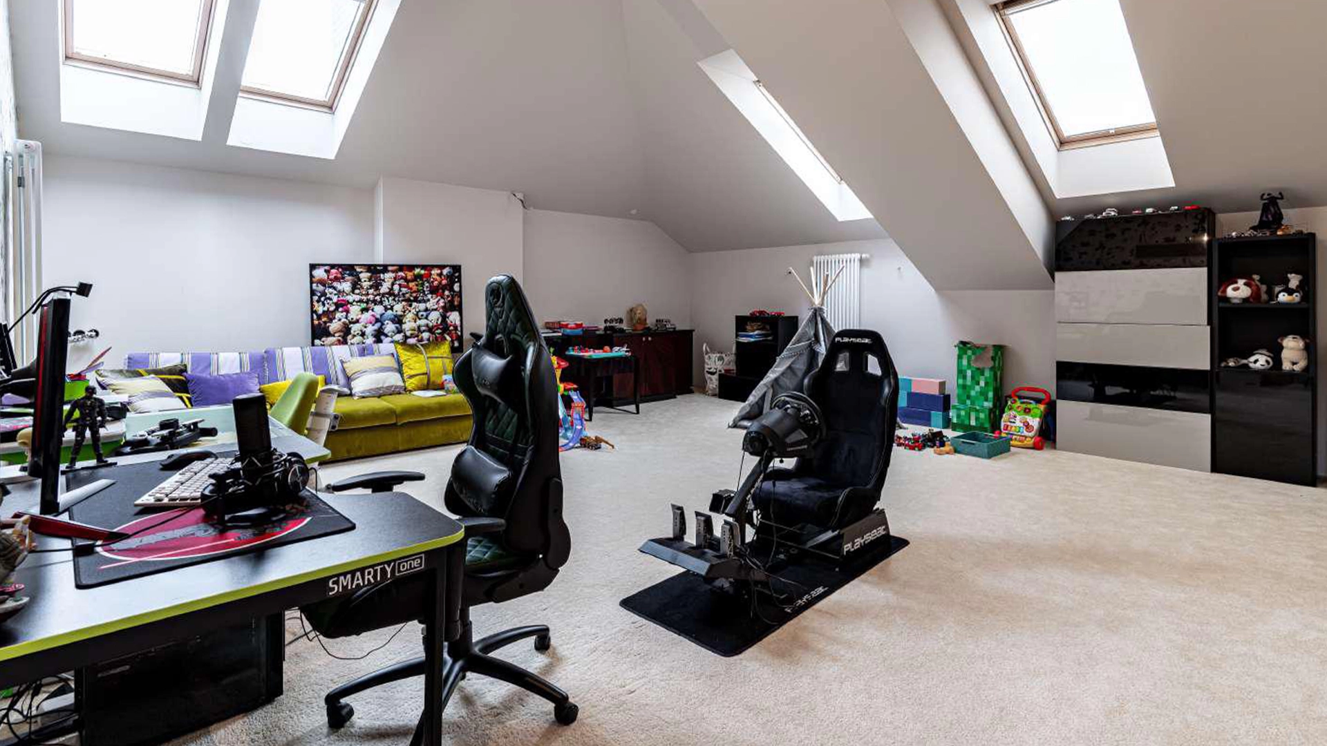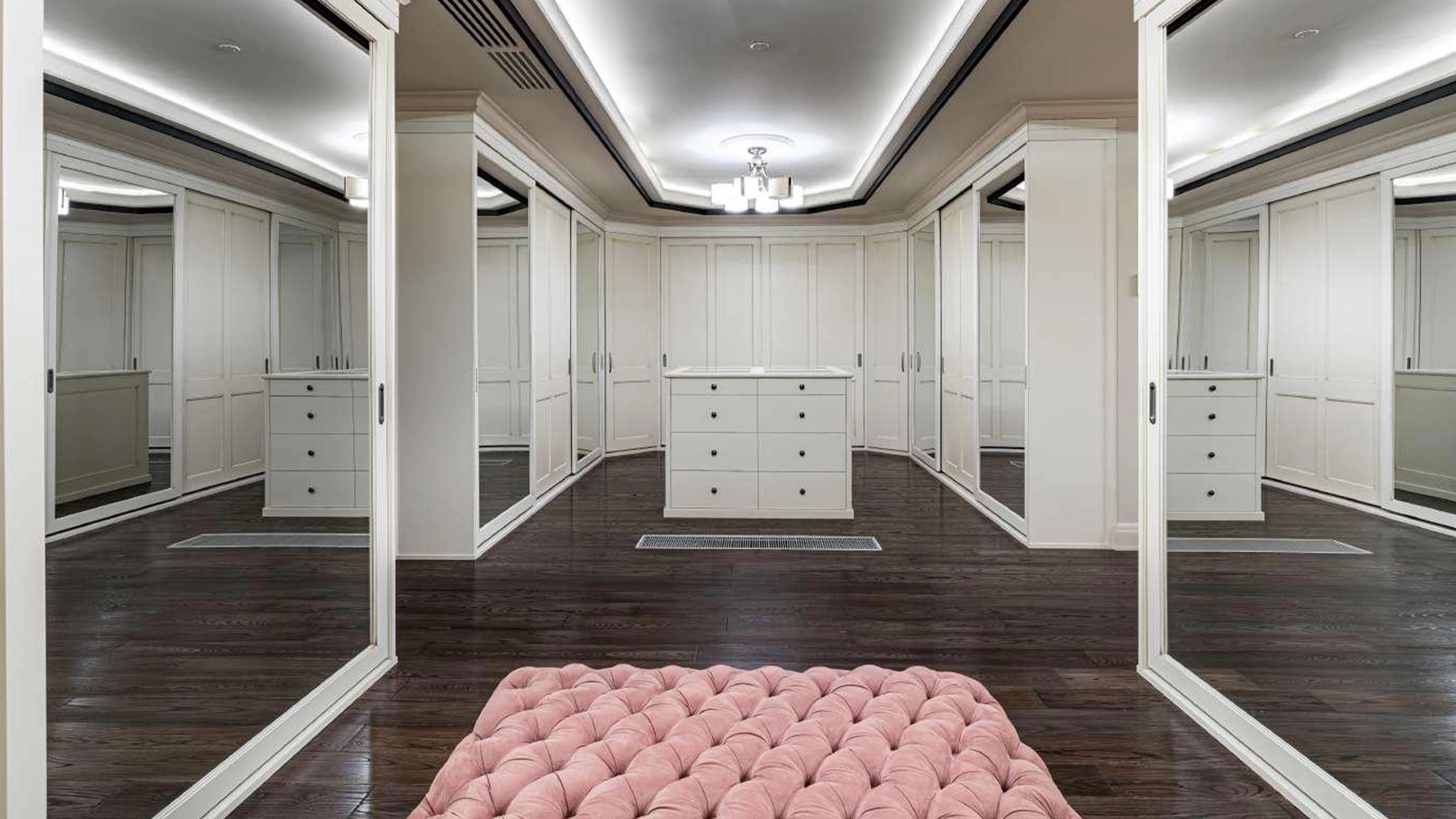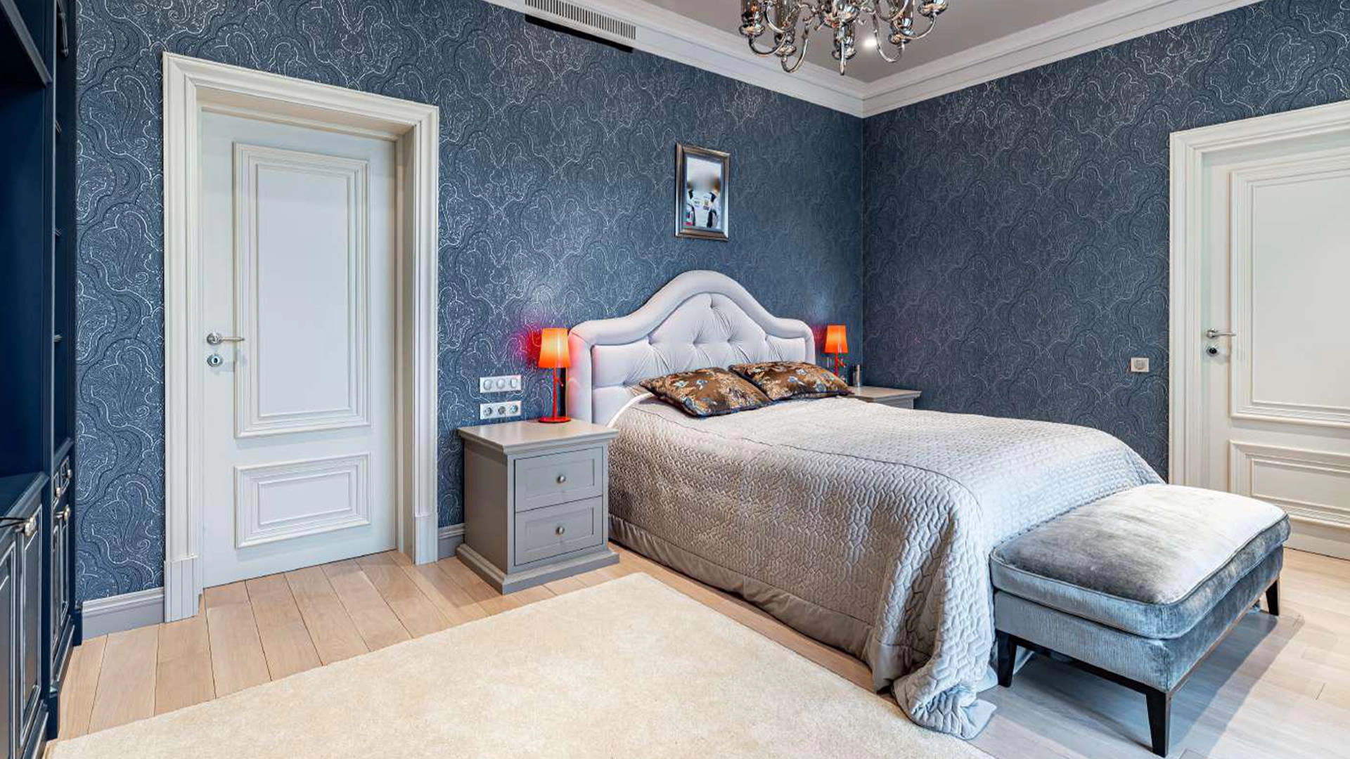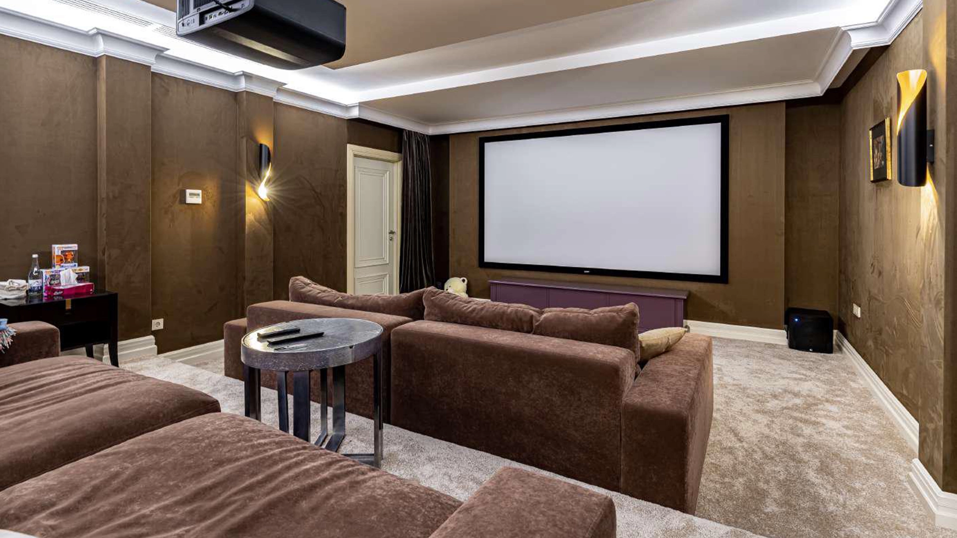 Для дополнительного комфорта оборудована система приточно-вытяжной вентиляции с кондиционированием. Планировка четырехуровневой резиденции включает просторную гостиную с камином и выходом на крытую летнюю террасу, кухню-столовую, 5 спален, кабинет, игровую, домашний кинотеатр, оружейную комнату и несколько гардеробных. Также в контуре дома находятся блок для персонала и 2 гаража, рассчитанные на 6 машин.