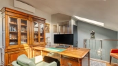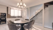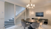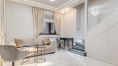 Трёхэтажный особняк с подвалом в Романовом переулке в районе Арбат. Исторический особняк построен в 1899 году, была проведена полная реконструкция здания в 2015 году с заменой межэтажных перекрытий на железобетонные. Отделка фасада выполнена штукатуркой бежевого цвета, украшением служат русты, карнизы и оконные кронштейны лилового оттенка. Особняк разделен на 2 таунхауса с отделкой и мебелью, в каждом свой отдельный вход. В таунхаусе площадью 76 м² организованы винный погреб, гостиная с санузлом, кухня-столовая и на последнем этаже — спальня с ванной комнатой. В таунхаусе площадью 81 м² спланированы постирочная с гардеробом, кухня-столовая, спальня с ванной комнатой и кабинет, для удобства установлен лифт. У входа 2 машиноместа, въезд осуществляется через шлагбаум. Особняк подойдёт для жизни или резиденции.