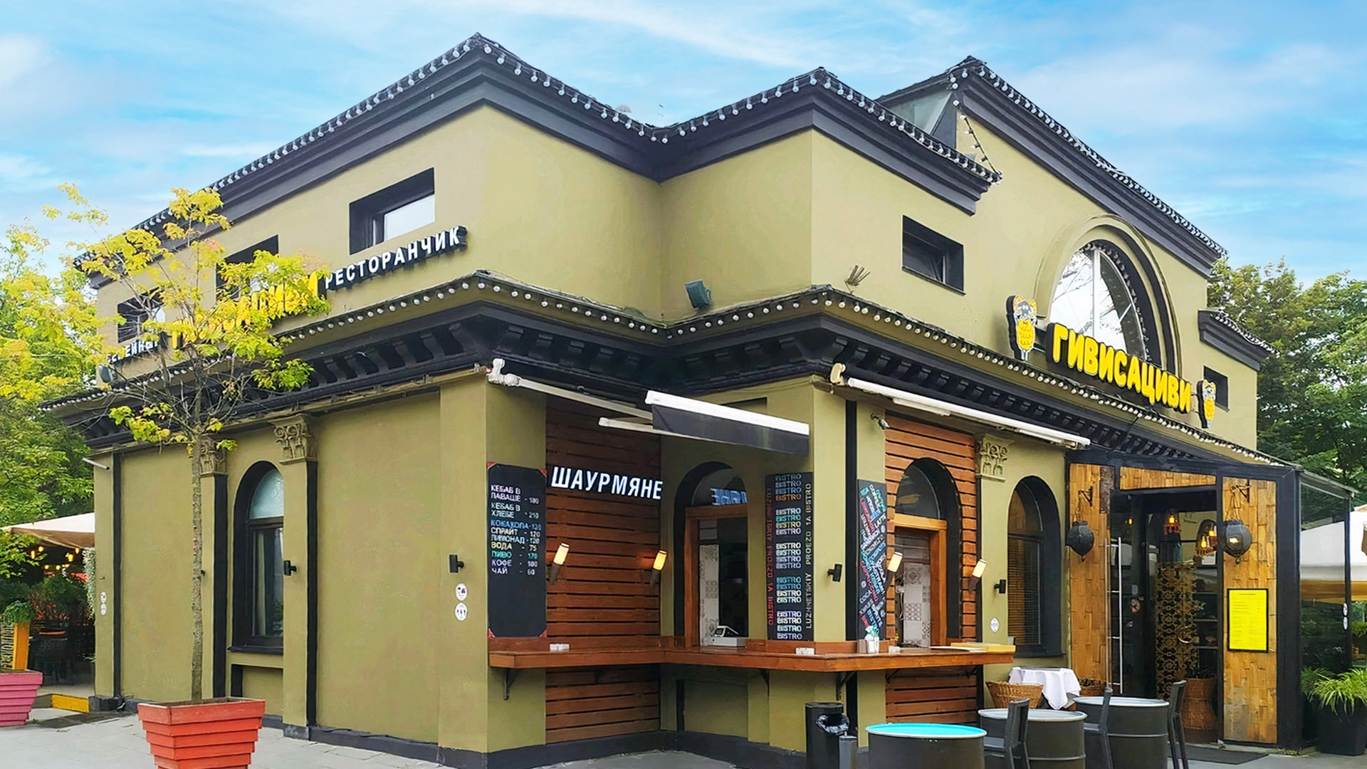 Двухэтажный особняк с террасой в Лужнецком проезде, в районе Хамовники. Здание 1996 года постройки оборудовано под ресторан с авторским дизайнерским ремонтом. Перед особняком расширенная зона тротуара с местами для отдыха и наземная парковка на 5 машин.