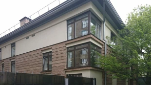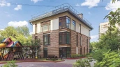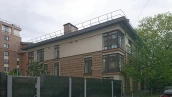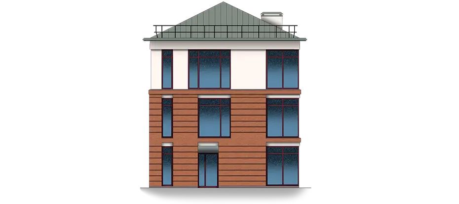 Трехэтажный особняк расположен на территории элитного жилого комплекса «Трилогия». Фасад здания облицован бежевой штукатуркой и красным клинкерным кирпичом. Окна панорамные, с угловым остеклением. На территории система охраны и контроля доступа. В распоряжении владельцев и арендаторов подземный паркинг на 4 машиноместа. В здании можно разместить банк, медицинский центр, клинику, офис, бизнес-центр, отель, гостиницу или хостел.