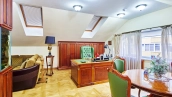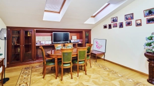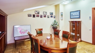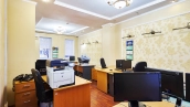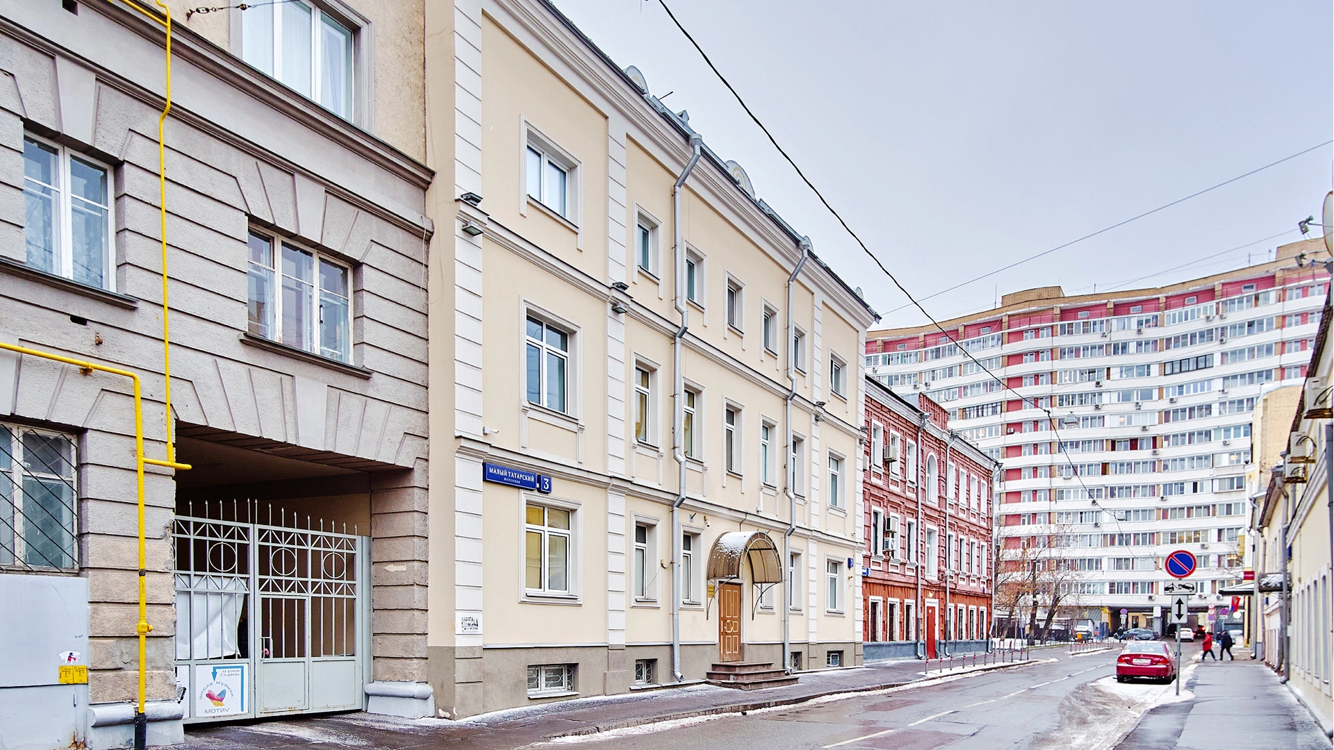 Трехэтажный особняк с мансардой и подвалом в Малом Татарском переулке в историческом районе Замоскворечье. Офисный особняк с рустом на фасаде 1870 года постройки. Здание оснащено современными инженерными и коммуникационными системами, по уровню комфорта соответствует бизнес-центру В+ класса. Внутри кабинетная планировка и качественная отделка в офисном стиле. Предусмотрены помещения для кухни, столовой и прачечной в подвале. На третьем этаже VIP-зона для руководства — кабинеты, комнаты отдыха, свои санузлы, приемная, конференц-зал и кухня. На прилегающей территории собственная парковка на 9 машин. Особняк подходит для представительства, офисов компании или банка.
