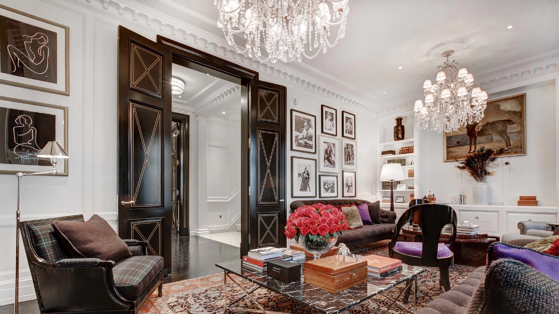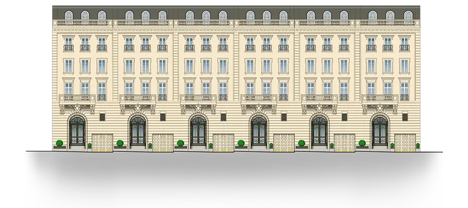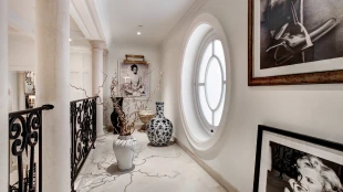 Одна из шести резиденций площадью 496 м² в комплексе Noble Row, созданных в партнерстве Ralph Lauren Home в Коробейниковом переулке на Остоженке. Фасады шести таунхаусов Nоblе Row выполнены в стиле Боз-ар и облицованы португальским известняком по старинной технологии. Каждый таунхаус с собственным парадным входом полностью декорирован от мебели до посуды. Внутри установлен лифт, который бесшумно поднимает гостей в уютную гостиную с камином на верхних этажах. Декоративная лепнина, хрустальные люстры и картины, написанные на заказ, украшают гостиную и спальни. Просторные ванные комнаты с окнами оборудованы сантехникой Waterworks изысканных форм XVIII века. На верхнем уровне терраса, с видами на Зачатьевский монастырь и Храм Христа Спасителя. Круглосуточная служба дорменов и консьержей. Есть встроенная автостоянка на два машиноместа.