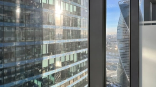 Офис площадью 60 м² в Пресненском районе. Объект с открытой планировкой расположен на 38-м этаже в башне «Запад» в многофункциональном центре «Федерация». Установлены системы приточно-вытяжной вентиляции и центрального кондиционирования. Выполнена современная отделка в светлых тонах, на полу уложен ковролин. Спланированы open space и 2 кабинета со стеклянными перегородками. Из панорамных окон открывается вид на башню «Федерация» и город. Вход осуществляется через общее лобби в здании по пропускам.