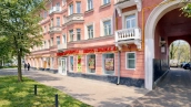 Помещение с открытой планировкой площадью 419 м² расположено на 1-м и подвальном этаже 4-этажного дома. Арендатор — продуктовый магазин. Первый этаж — 263 м², подвал — 156 м². Отдельный вход с улицы и со двора с зоной разгрузки, витринное остекление. Предусмотрены размещение рекламы на фасаде, бесплатная городская парковка перед домом.