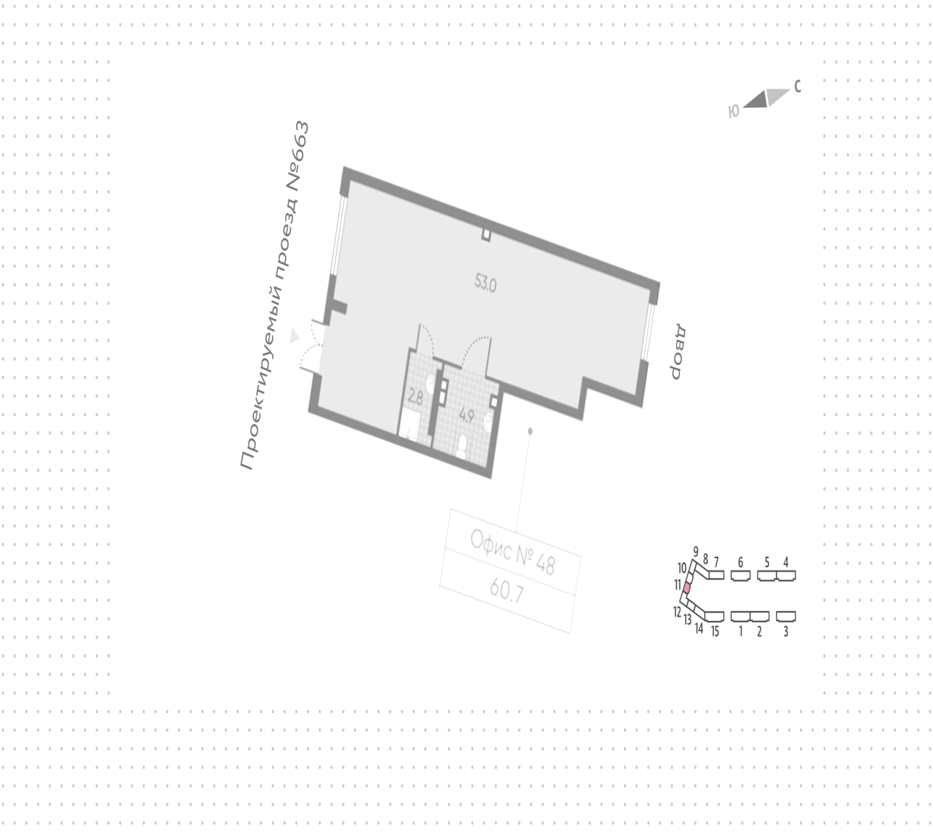 Помещение под офис без отделки в жилом комплексе «Лучи», 60 м²