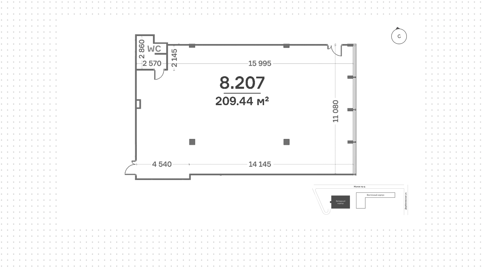 Офис без отделки с панорамными окнами в 15 минутах от Павелецкой, 209 м²