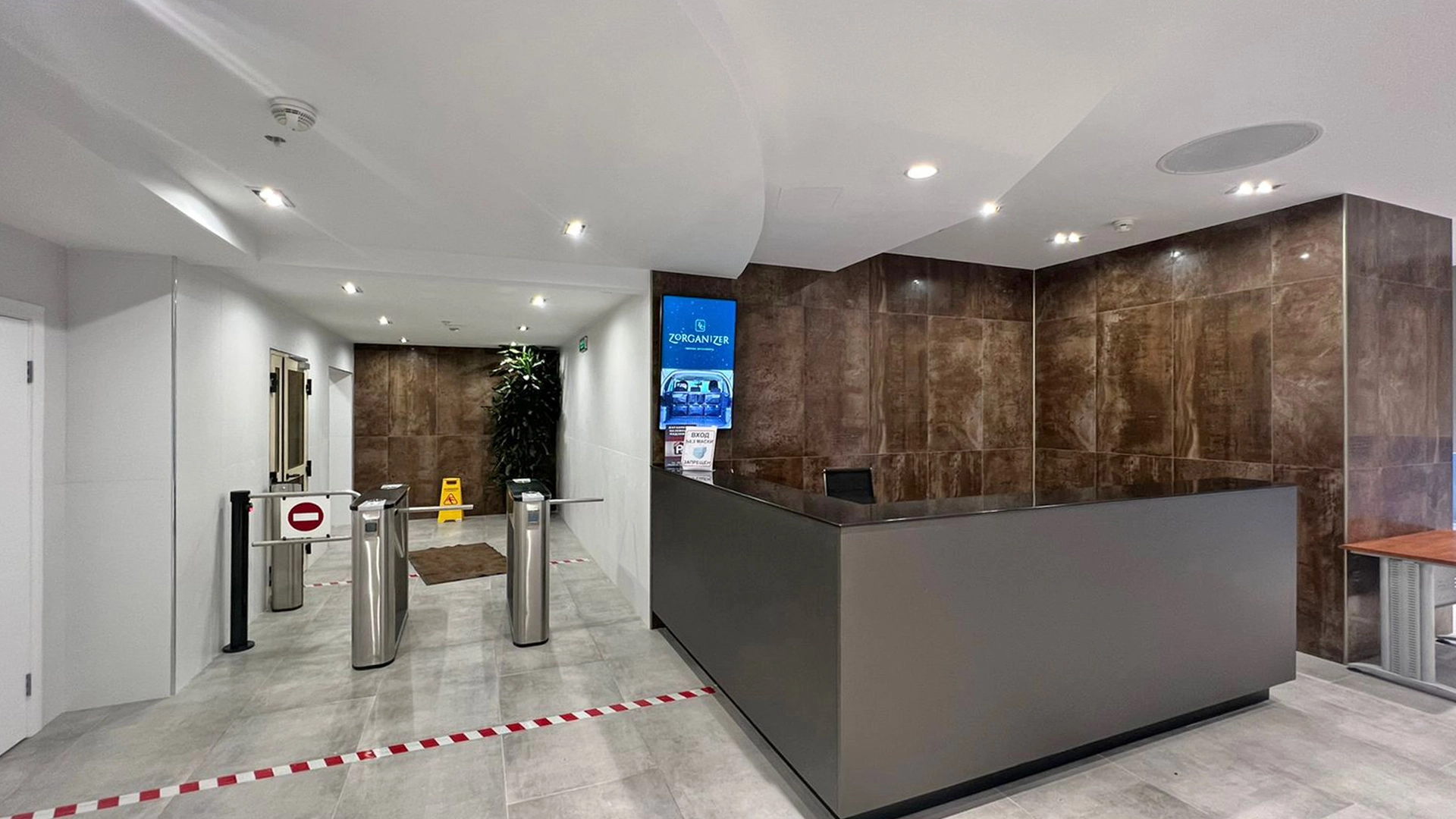Двенадцатиэтажный бизнес-центр «Удальцова Плаза» класса «А» в районе Проспект Вернадского. Большой поток пешеходного и автомобильного трафика, рядом несколько остановок общественного транспорта и пешеходные переходы. Окружение — фитнес-студия Kvartal, салон красоты «Калар».