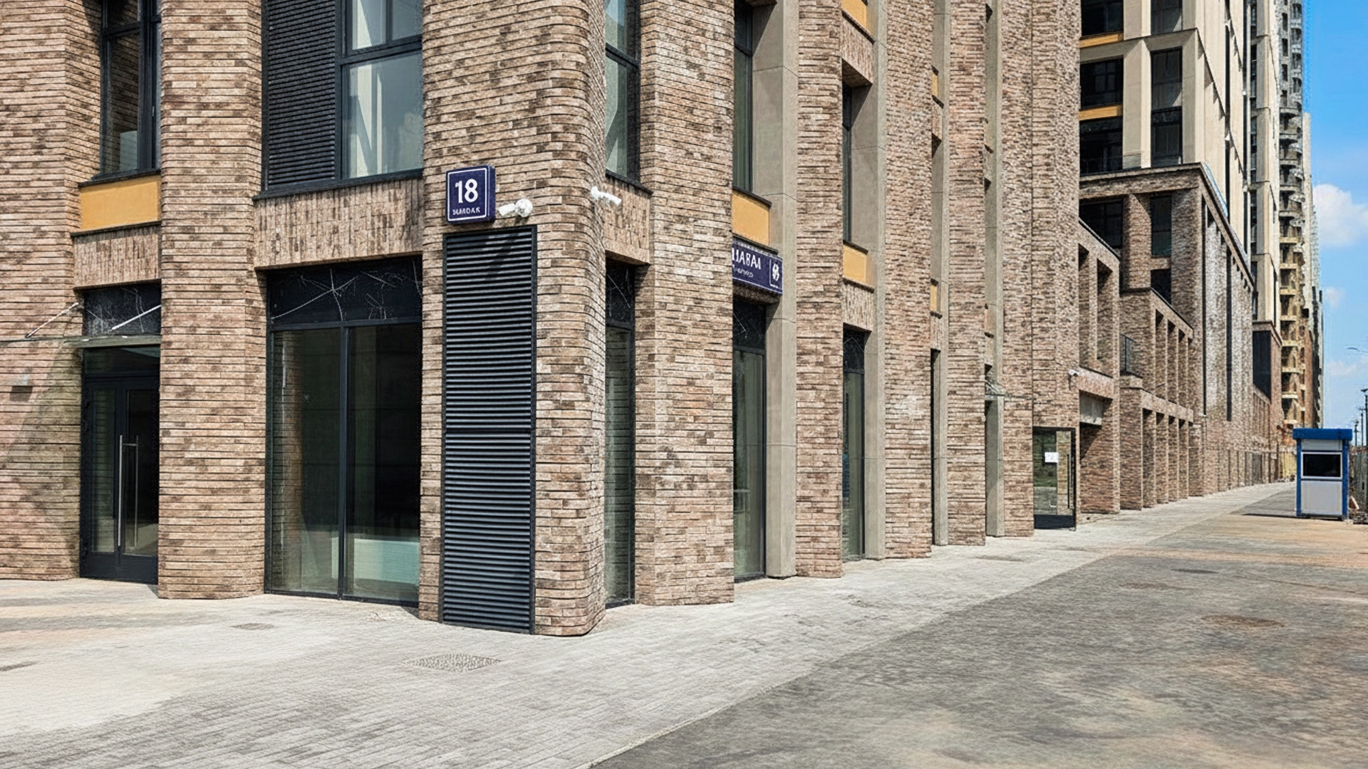Отдельный вход с улицы и со двора, витринное остекление. Предусмотрена возможность размещения рекламы на фасаде. Большой поток пешеходного и автомобильного трафика. На территории проекта предусмотрен подземный паркинг. За 8 минут пешком можно дойти до станции метро «Технопарк».