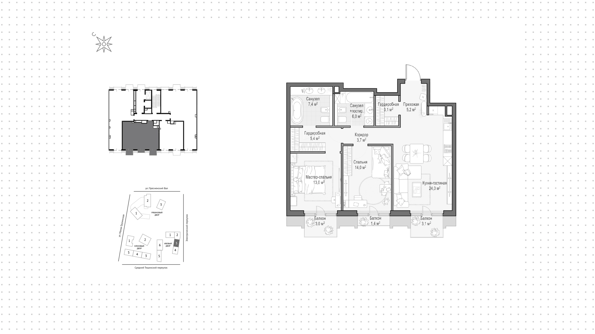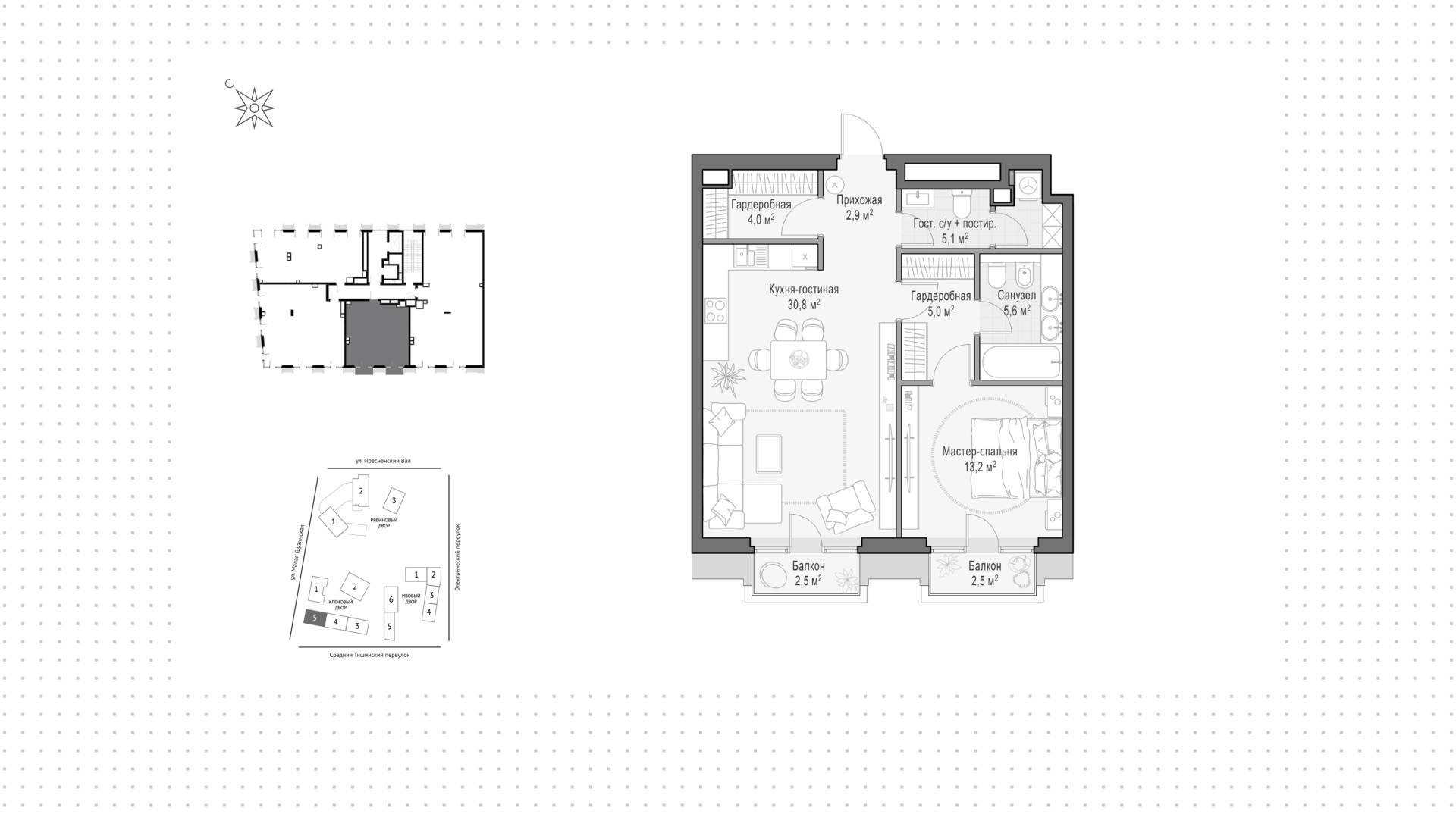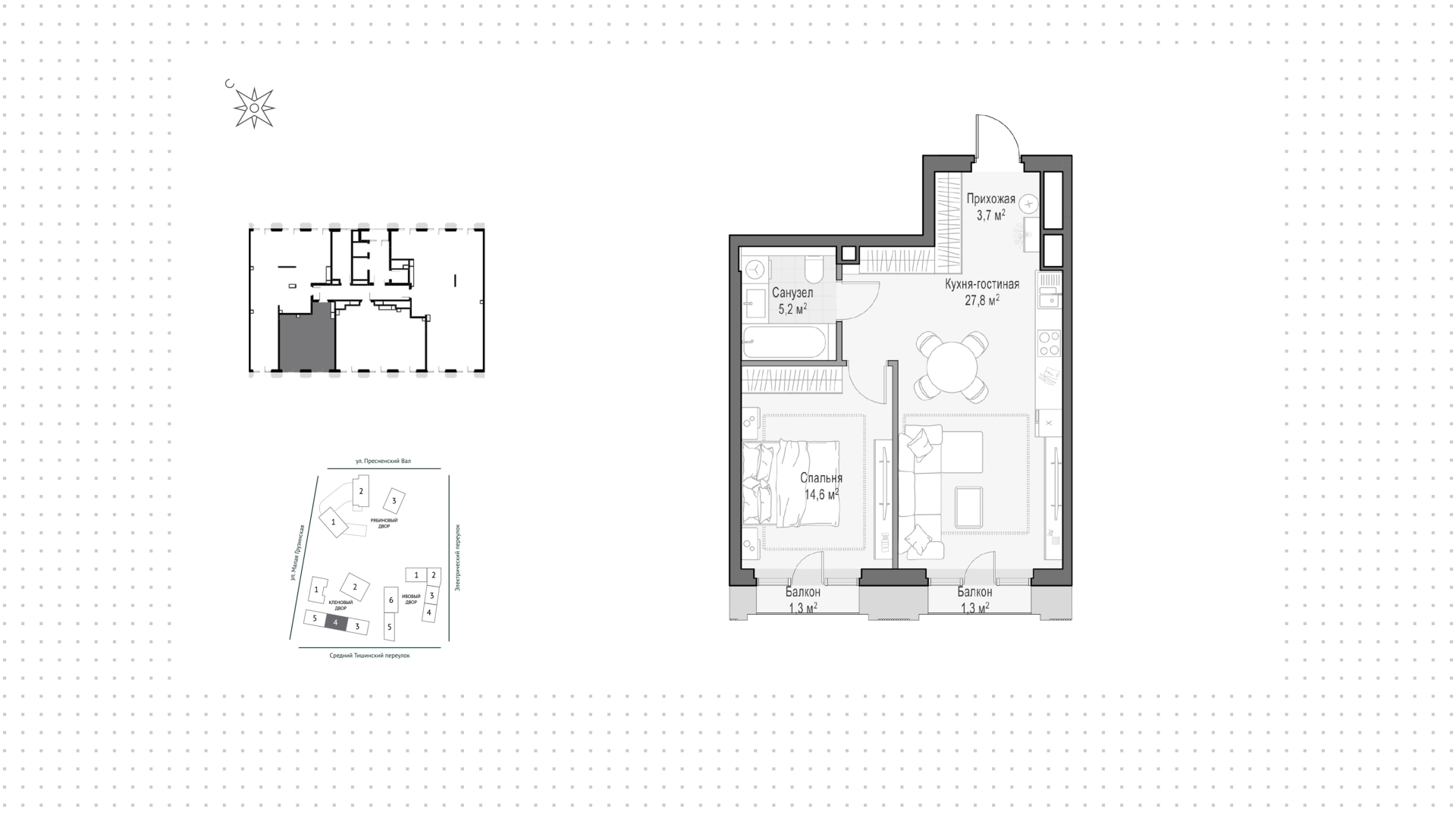 Комплекс расположен в историческом центре Москвы, рядом с Пресней, что обеспечивает доступ ко всем основным объектам инфраструктуры и культурным центрам города.