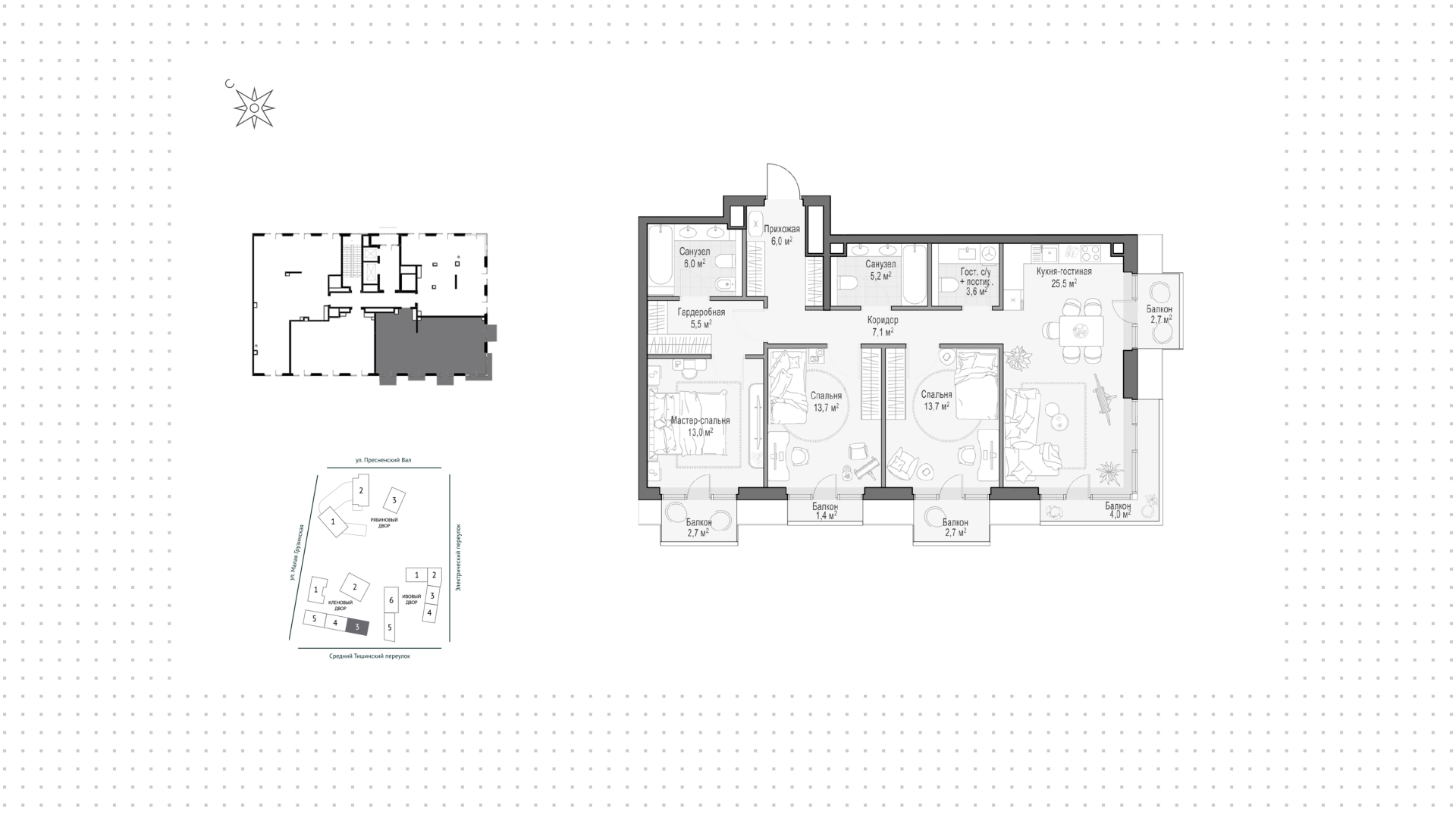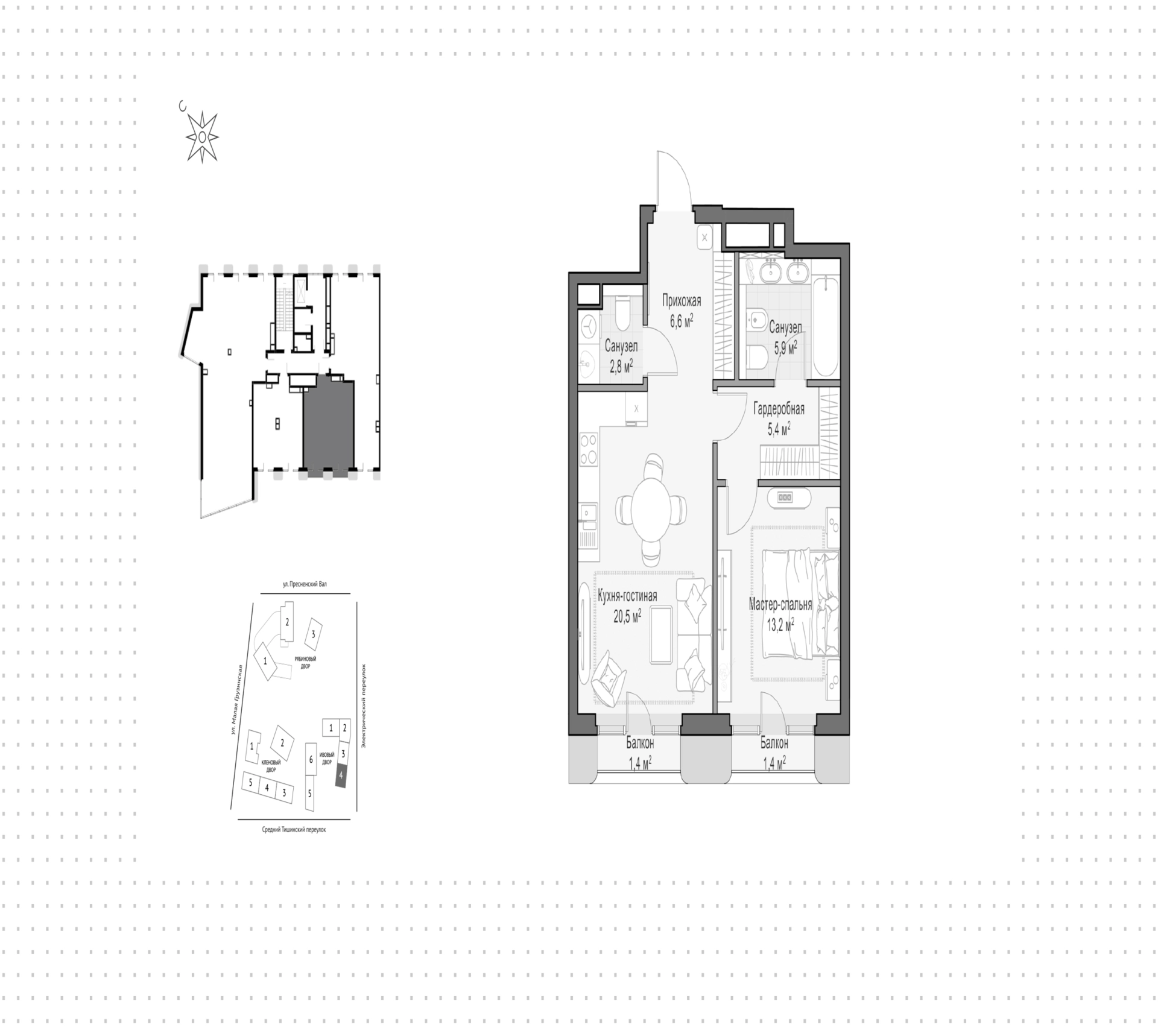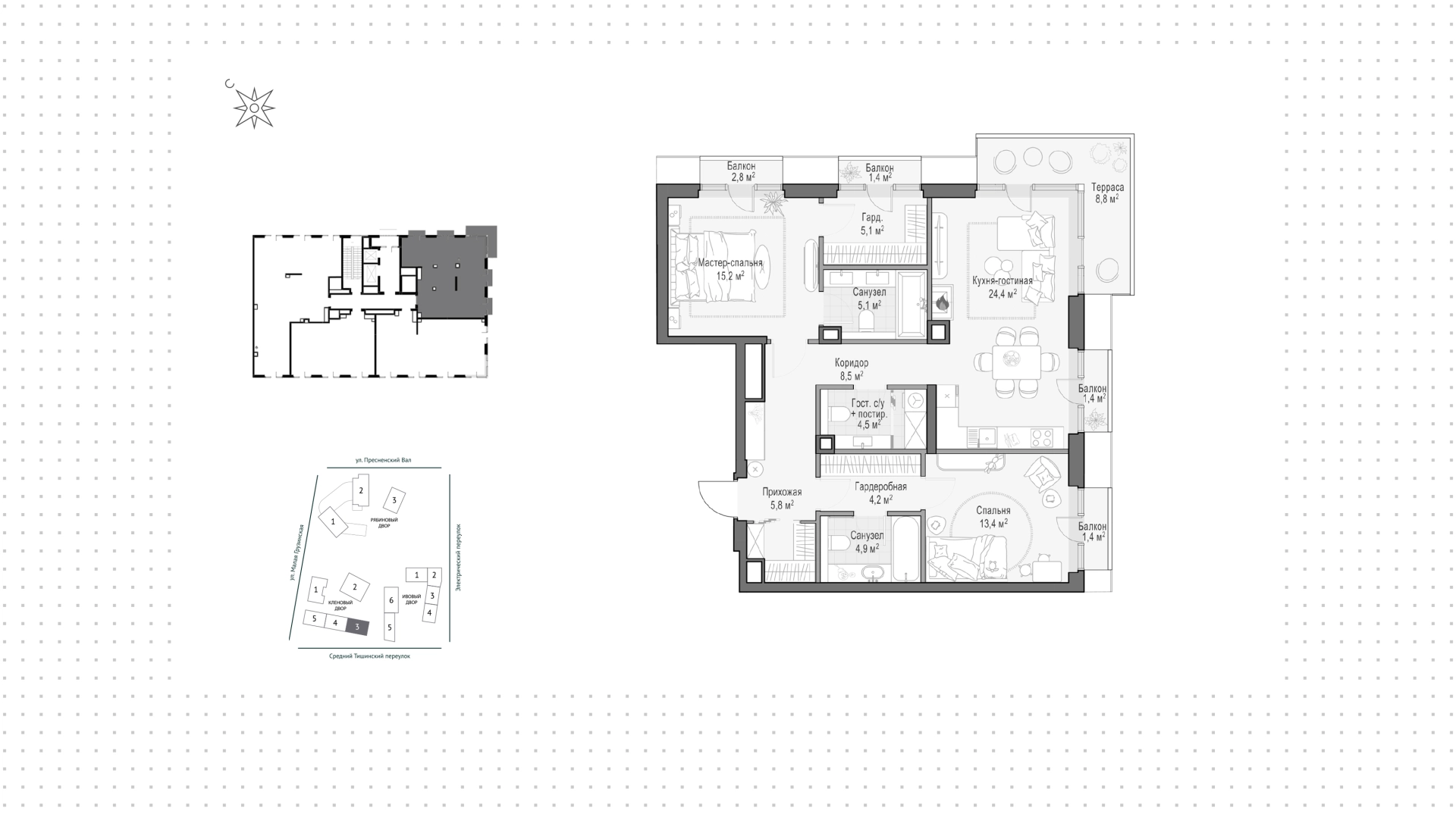 Комплекс расположен в историческом центре Москвы, рядом с Пресней, что обеспечивает доступ ко всем основным объектам инфраструктуры и культурным центрам города.